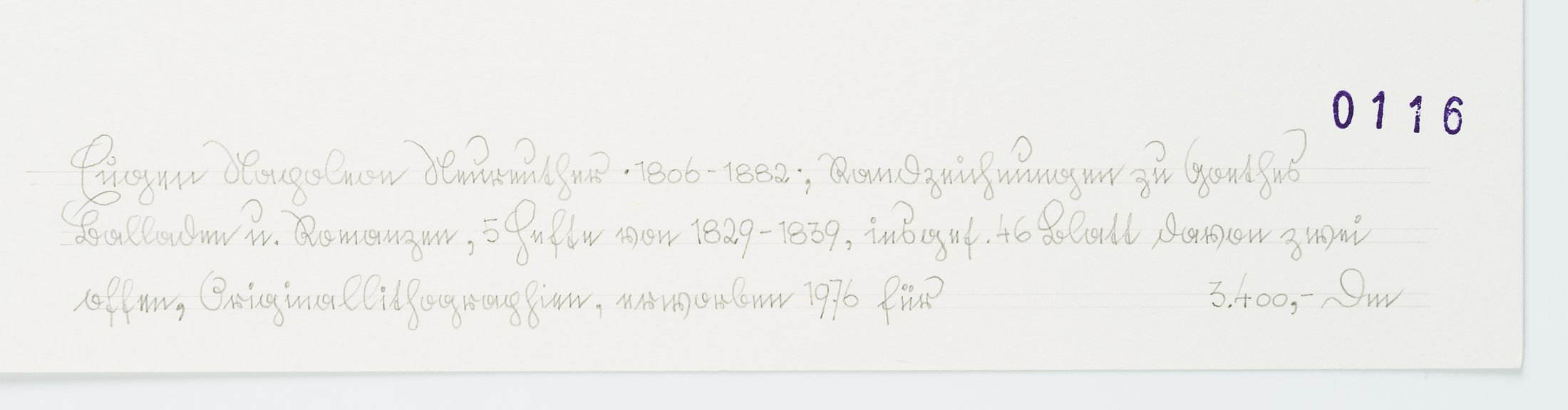 - Bezeichnung: rechts unten im Stein datiert "9/29", rechts unten Stempel "0116"