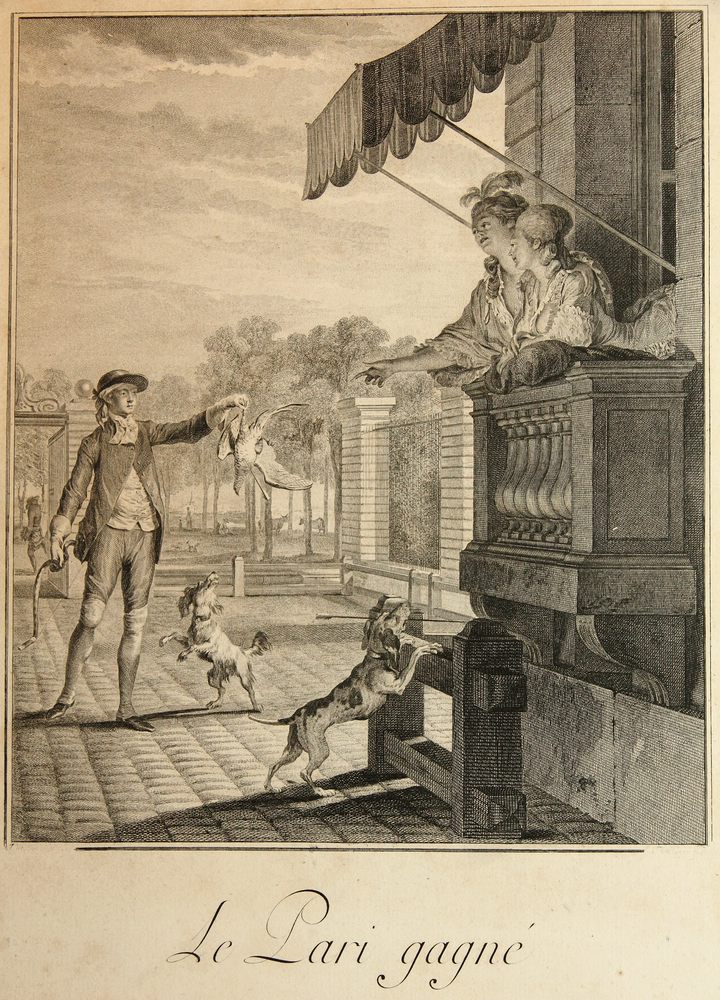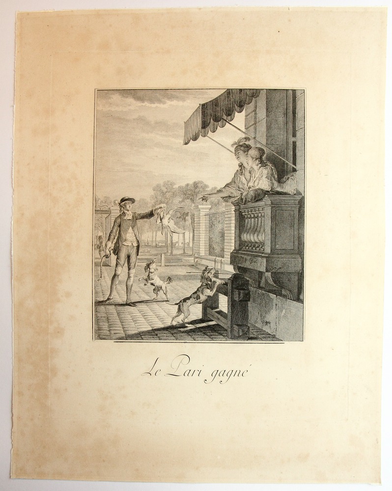 Jean Michel Moreau (1741 Paris - 1814 ibid.), Le Pari gagné, The winning bet, 18th century, Copper engraving