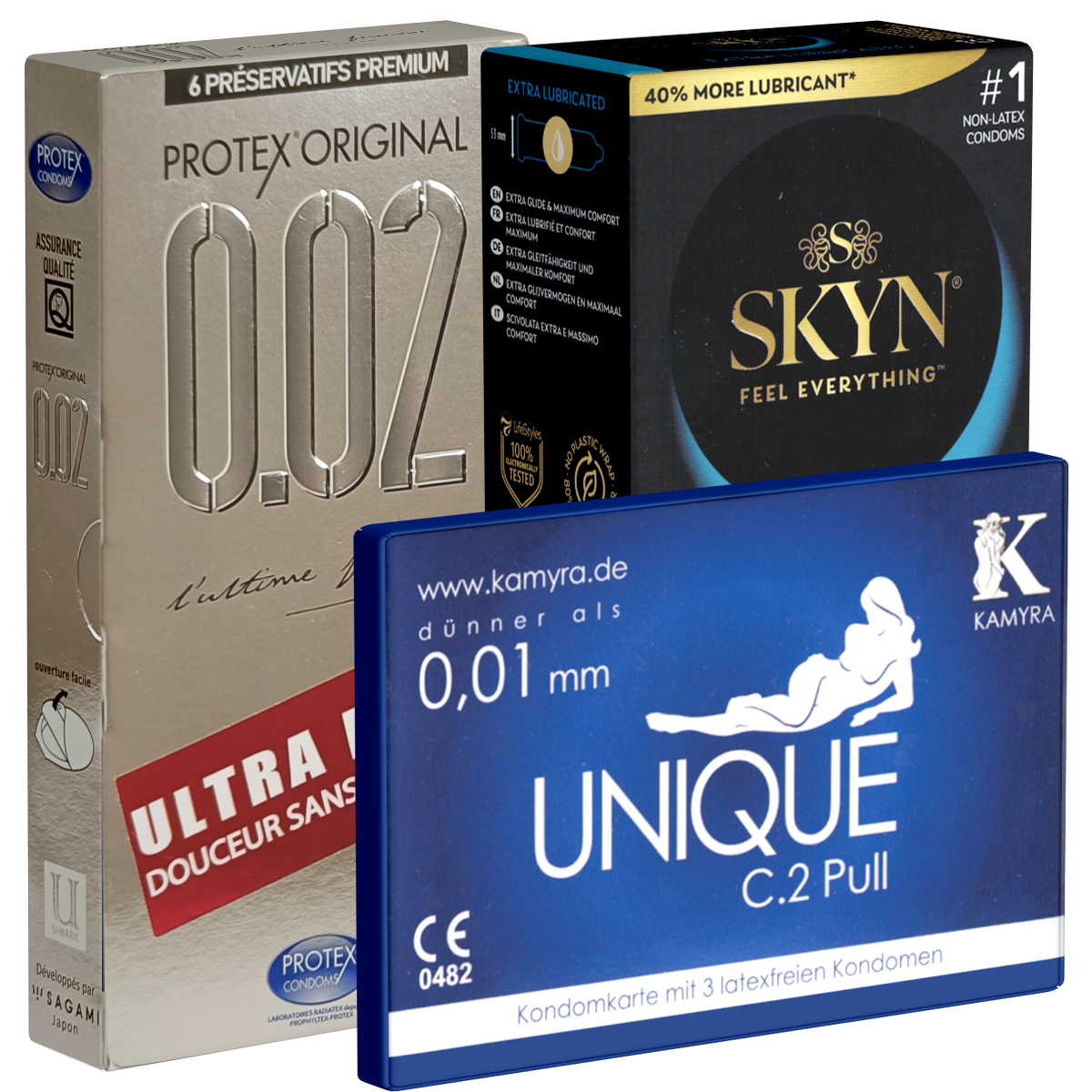 | Packungsgröße | 19 Stück (3× Kamyra, 10× SKYN, 6× Protex) |