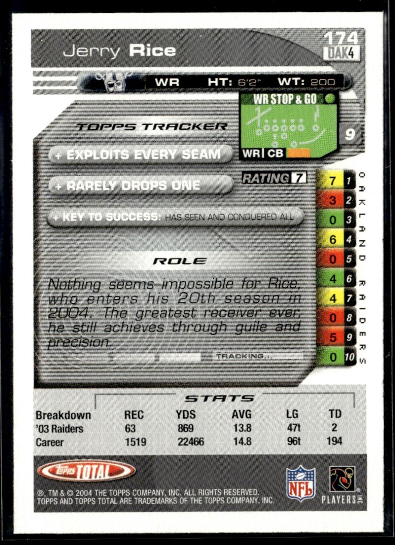 2004 Topps Total Jerry Rice Oakland Raiders #174