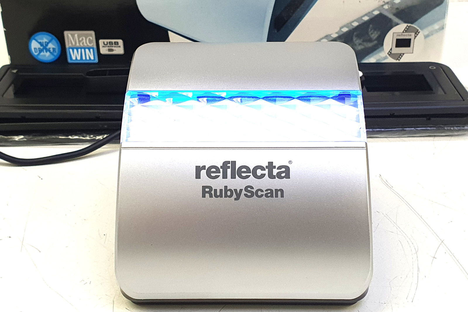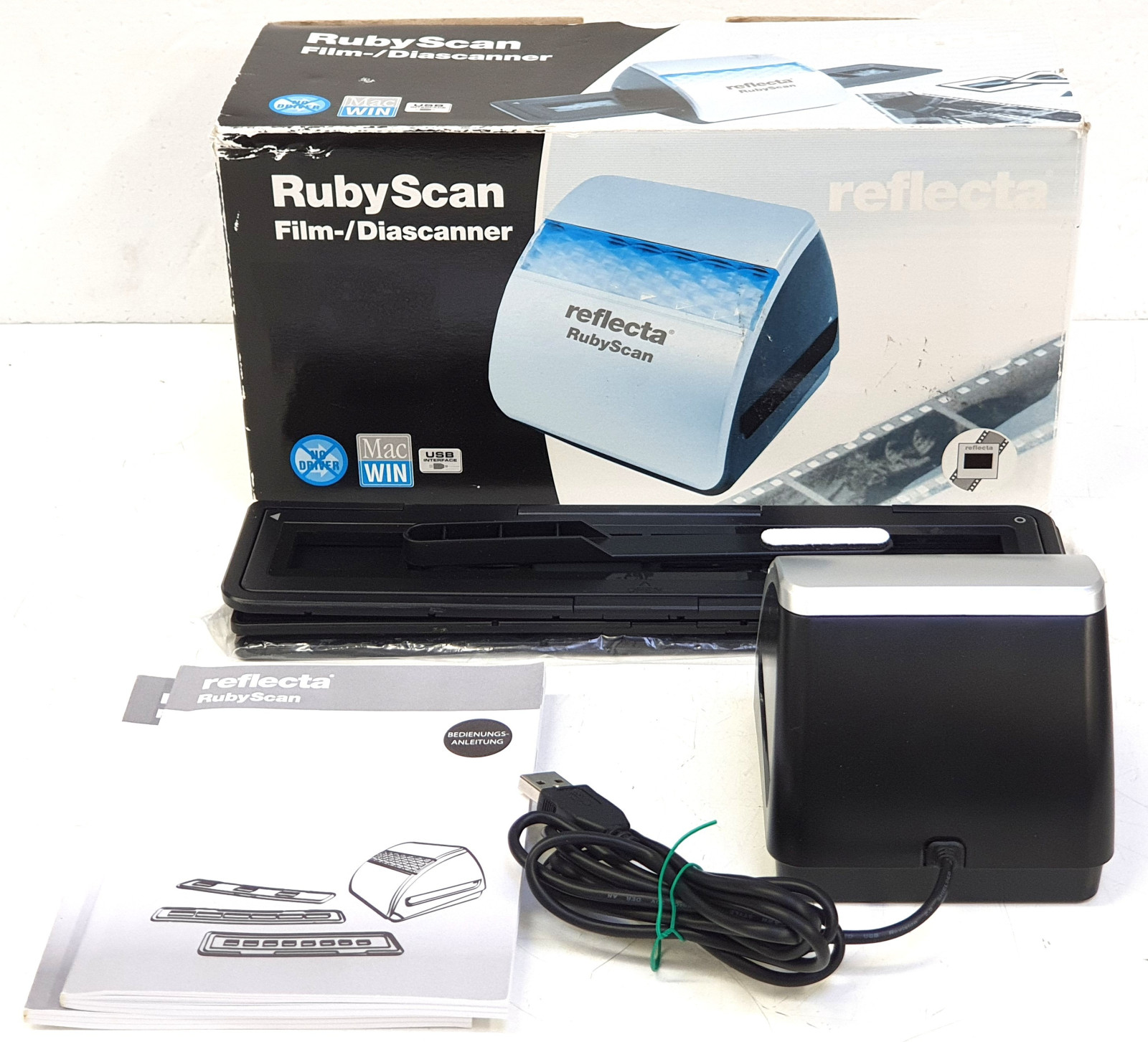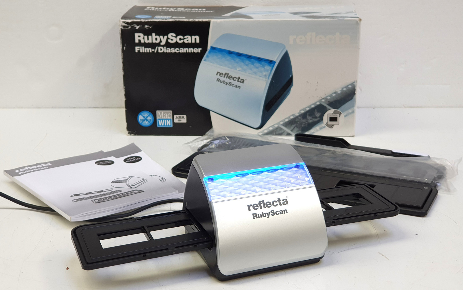 Verkaufe den kompakten und zuverlässigen reflecta RubyScan Film- und Diascanner. Ideal, um alte Fotoarchive schnell und einfach in digitale Bilddateien umzuwandeln. Das Gerät ist extrem platzsparend und benötigt kein separates Netzteil (Stromversorgung direkt über USB).