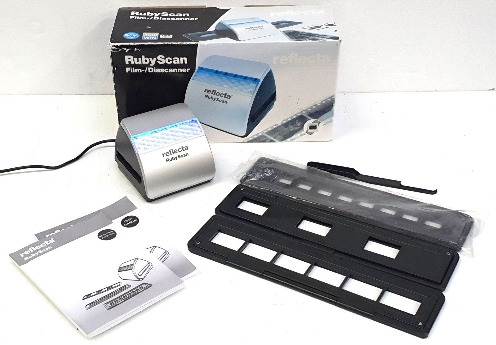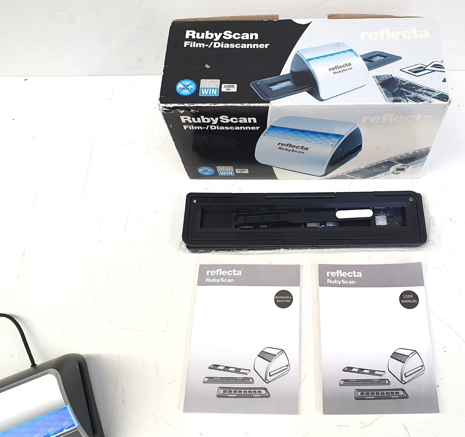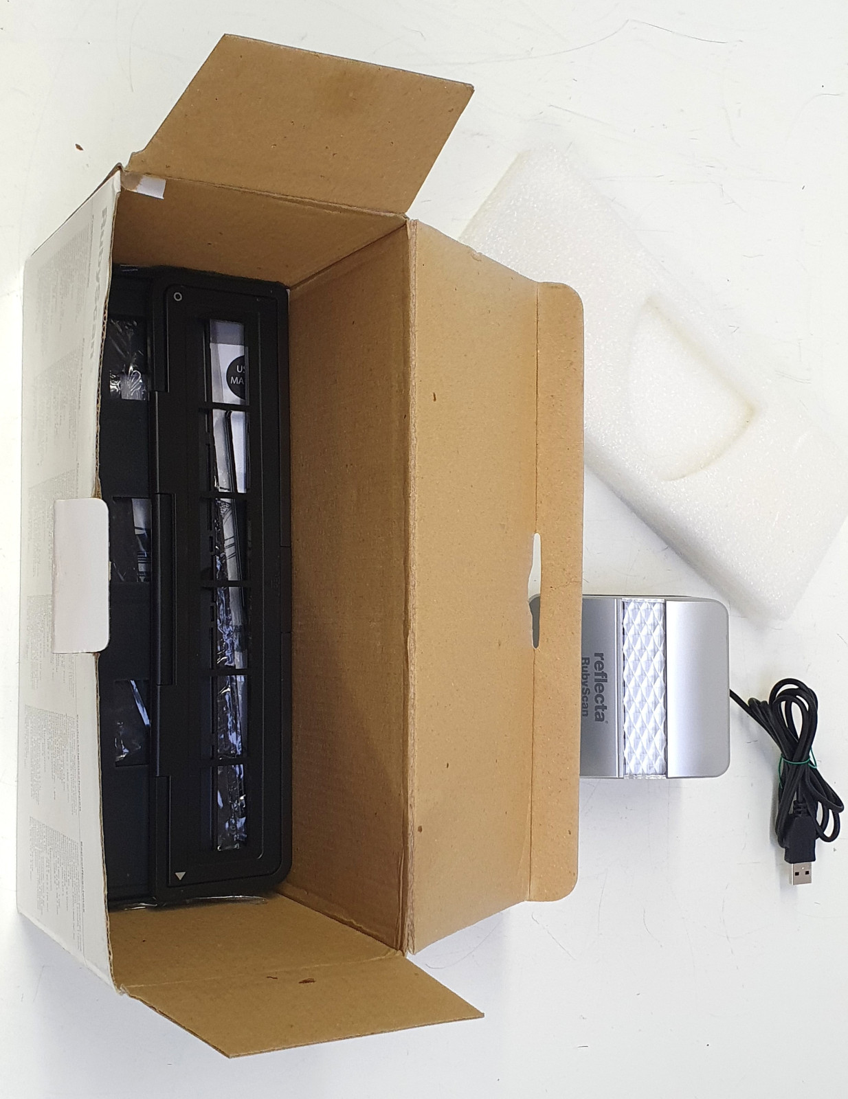 Verkaufe den kompakten und zuverlässigen reflecta RubyScan Film- und Diascanner. Ideal, um alte Fotoarchive schnell und einfach in digitale Bilddateien umzuwandeln. Das Gerät ist extrem platzsparend und benötigt kein separates Netzteil (Stromversorgung direkt über USB).