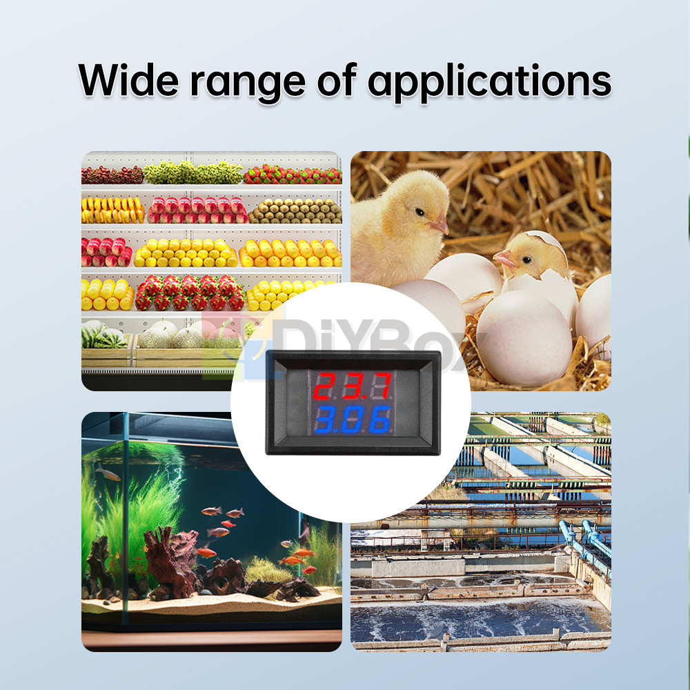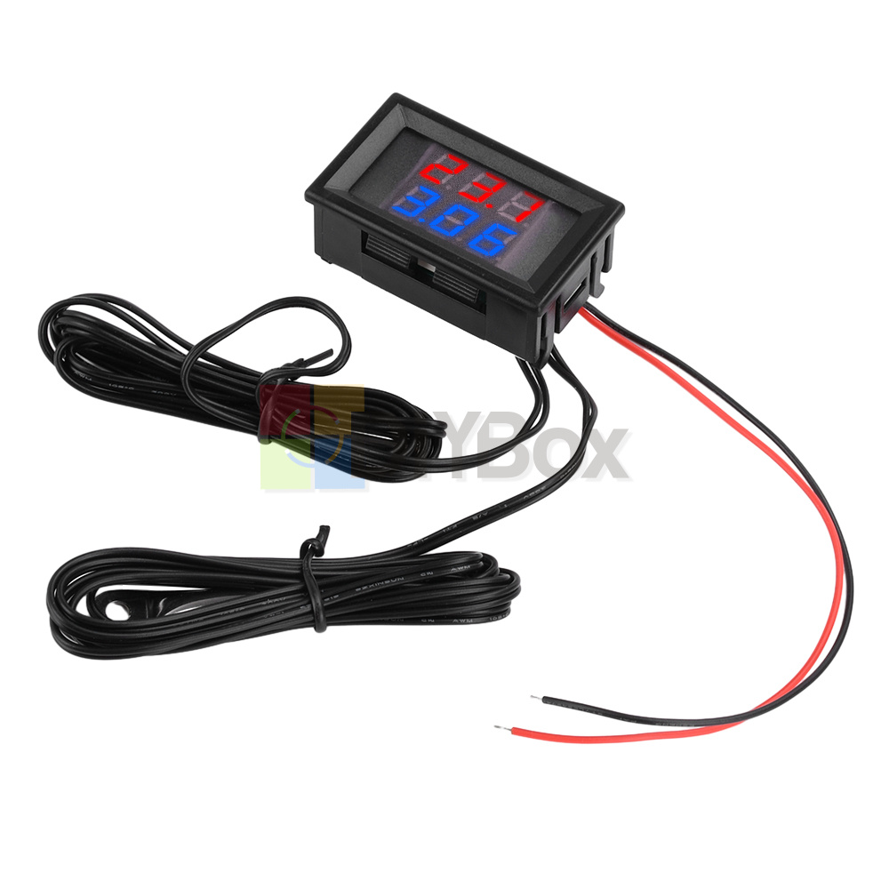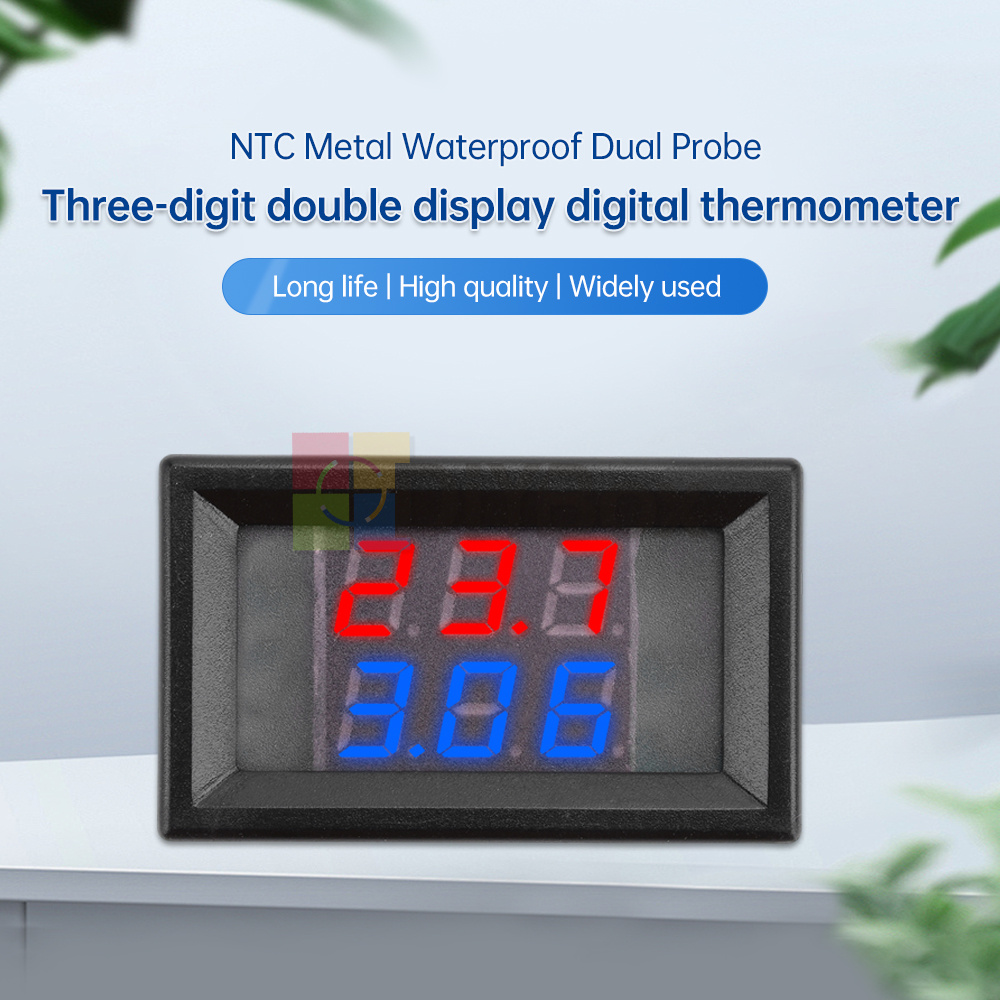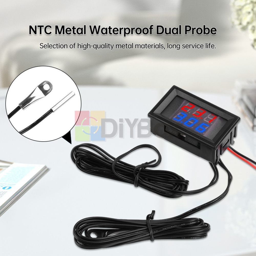 DC 4-28V Digital Temperature Sensor NTC Metal Probe Dual LED Display Thermometer
