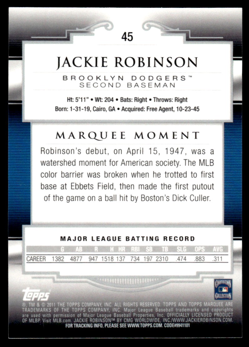 2011 Topps Marquee Jackie Robinson Brooklyn Dodgers #45