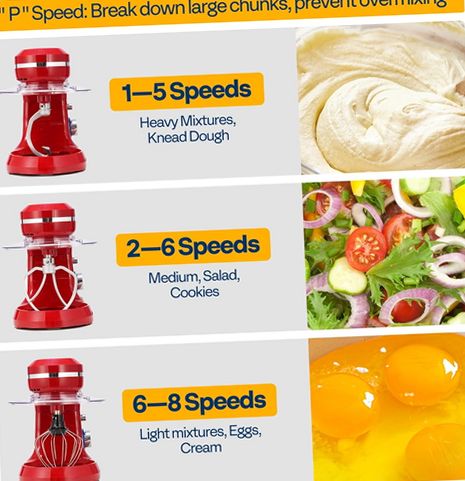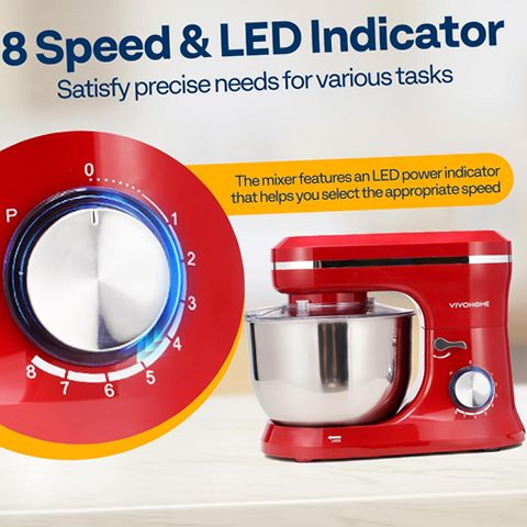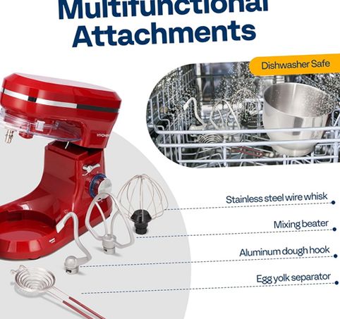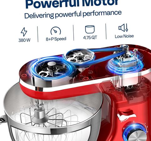 The SPECSTAR 4.75 Quart Electric Stand Mixer is designed to be a versatile and reliable kitchen companion for baking and food preparation. The mixer features an 8-speed control with pulse function to meet precise mixing needs, whether whipping egg whites, kneading dough, or blending batter. Its planetary mixing system rotates the beaters around the bowl for even and thorough mixing of ingredients. The spacious 4.75-quart food-grade stainless steel bowl is anti-corrosive and dishwasher safe along with most attachments (except the lid), making cleanup easy. The tilt-head design allows effortless access to the bowl and attachments, while safety features include automatic shutoff when the head is lifted. Additional user-friendly elements include a splash-proof bowl cover to prevent messes and suction cups on the base to keep the mixer stable during operation. Included accessories such as a dough hook, beater, wire whisk, and egg yolk separator provide multifunctional use for various recipes. Crafted from durable alloy steel, aluminum, and plastic materials, this stand mixer combines style with practicality for any kitchen setting.