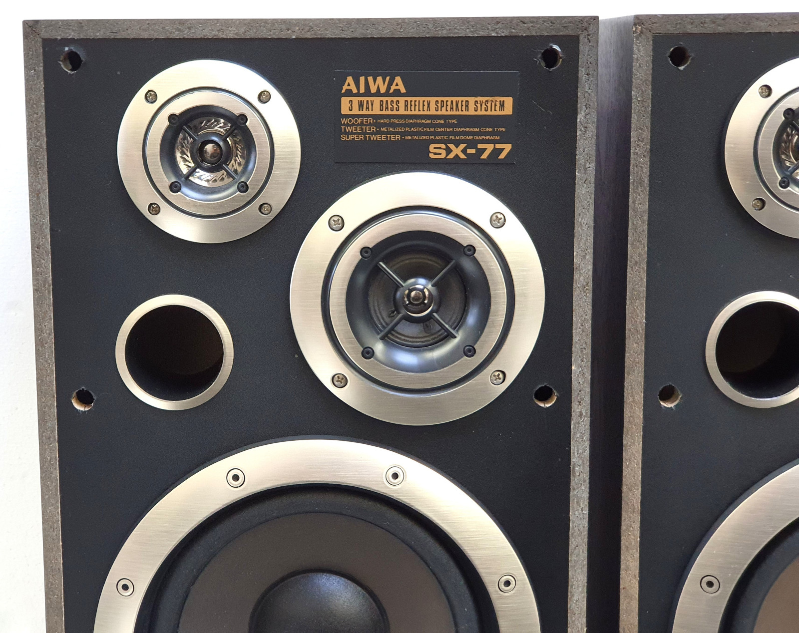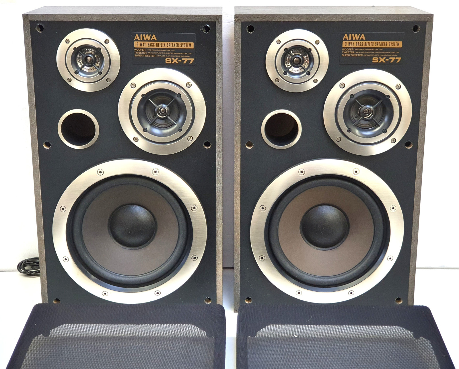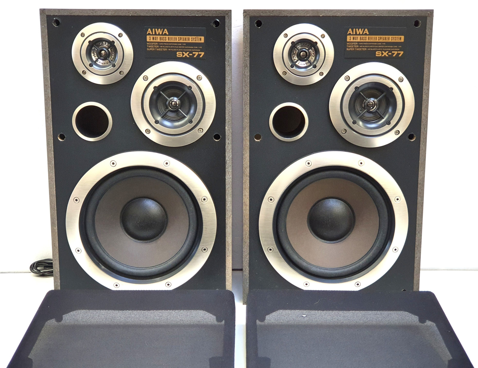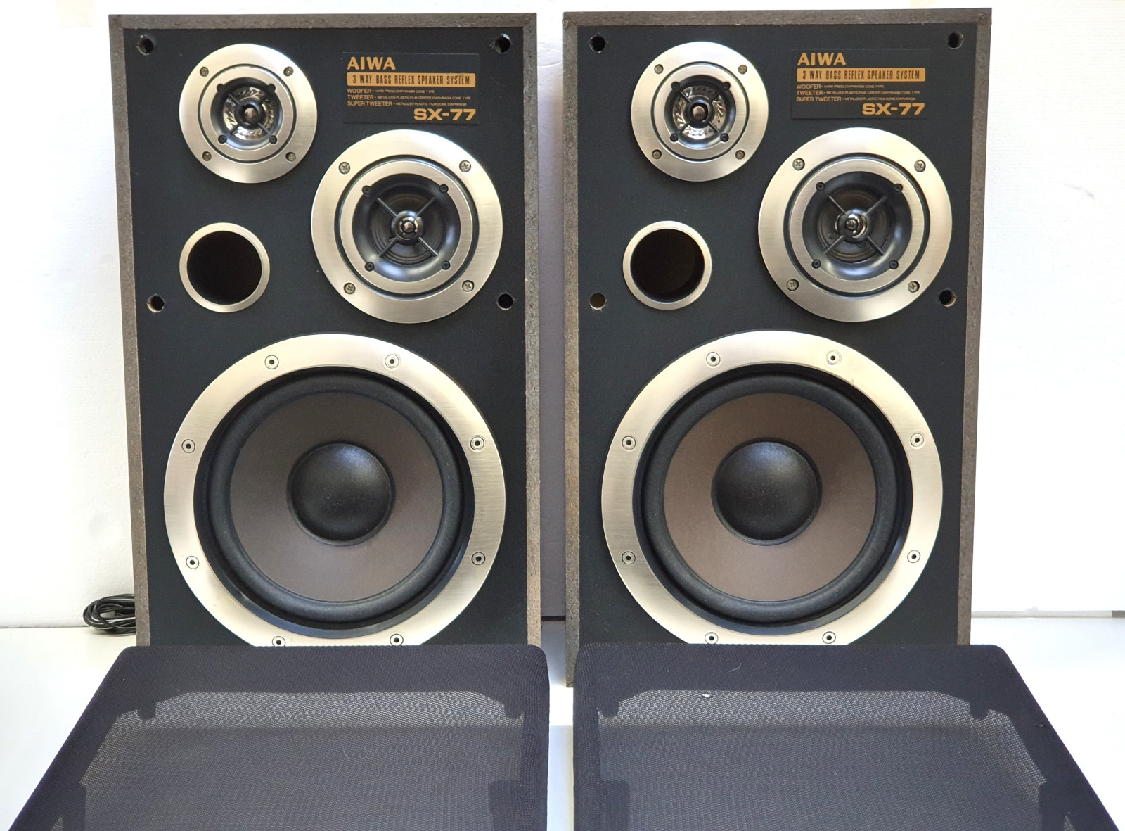 Zum Verkauf steht ein Paar der legendären Aiwa SX-77 Regal-Lautsprecher. Diese Boxen stammen aus der Blütezeit der japanischen HiFi-Technik und sind bekannt für ihren kraftvollen, ausgewogenen Klang. Mit einer Musikleistung von 60 Watt und dem 3-Wege-Bassreflex-System sind sie die ideale Ergänzung für Ihre Stereoanlage oder Ihr Retro-Setup.