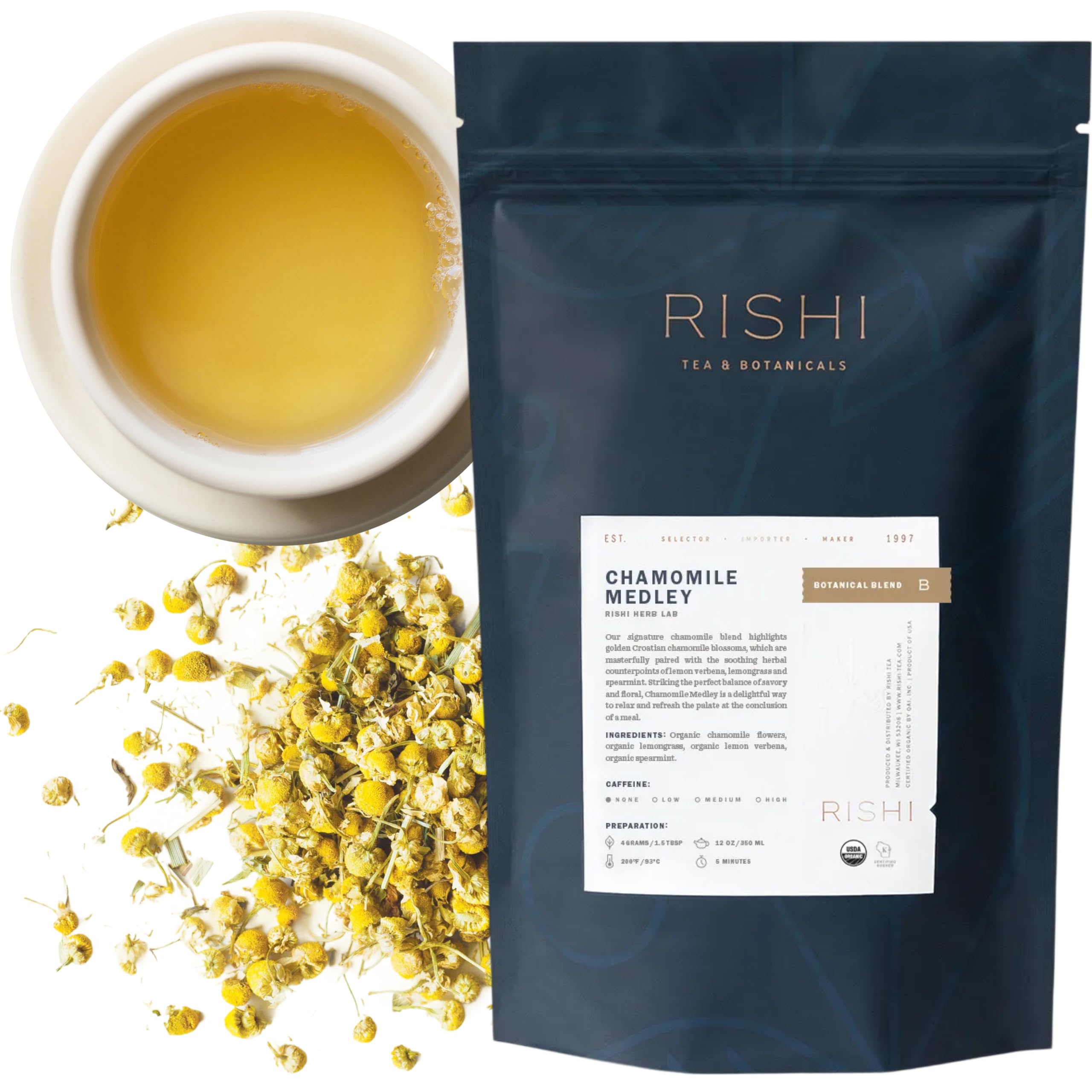 Savor & Enjoy - Brew 1.5 tablespoons of Chamomile Medley in 8 ounces of water at 200 degrees Fahrenheit for 4 to 5 minutes and enjoy this calming ensemble of chamomile with hints of refreshing citrus and mint.