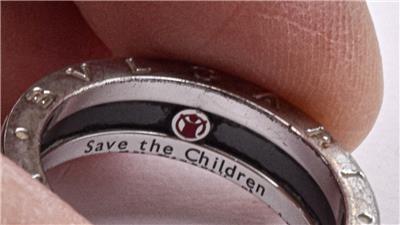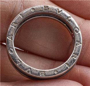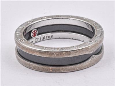 This is a guaranteed Bulgari unisex ring, in a size, 64 or American 10.5. It is call, the Save the children, ring, and it is 6.85mm wide, and still has all the black background intact, and the stamping inside, are as crisp as possible. This is a great designer ring, and ready to wear.