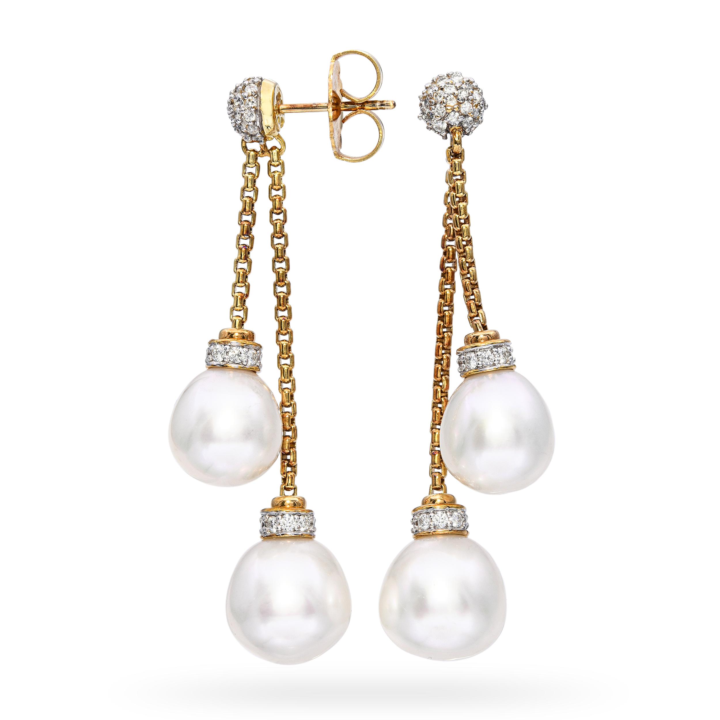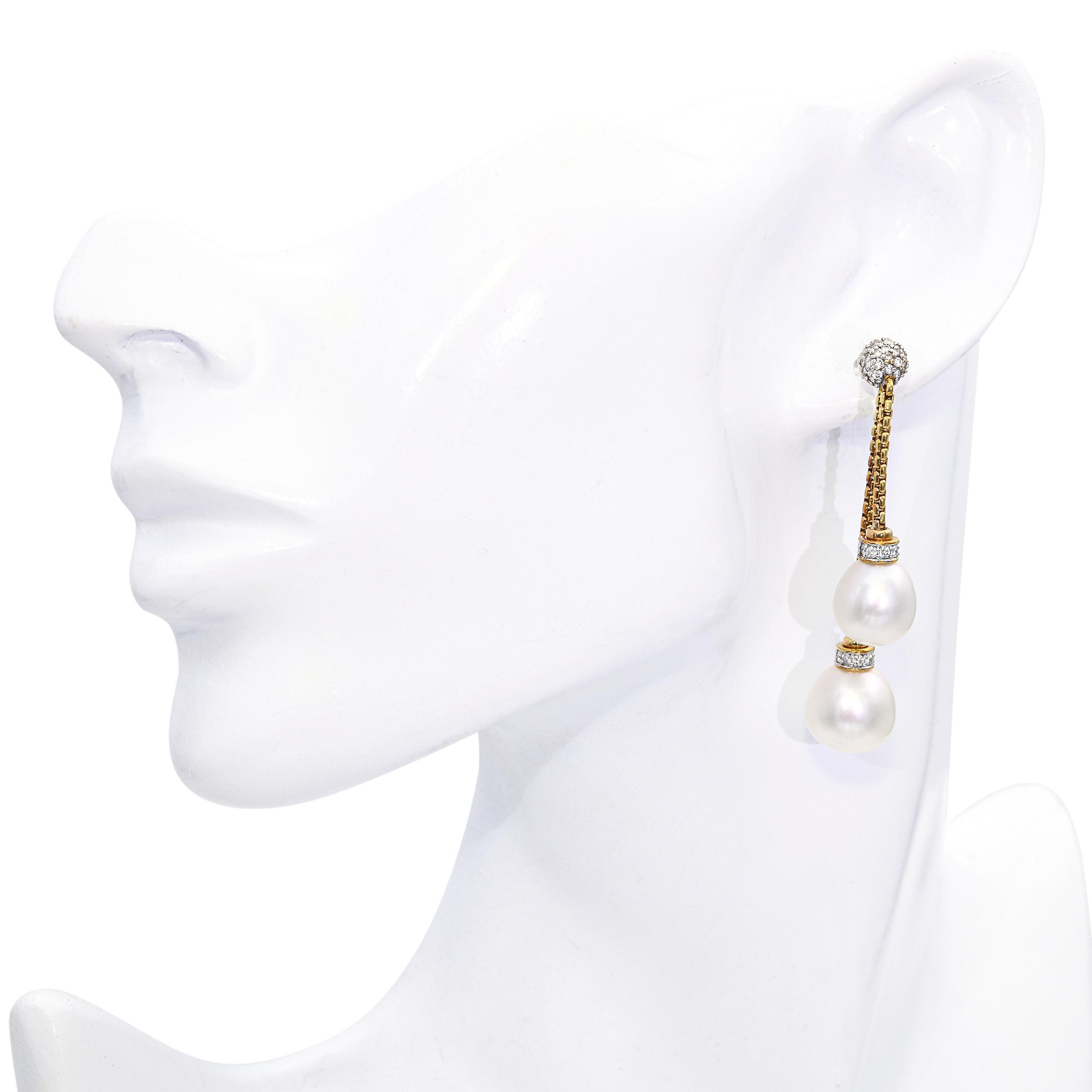 David Yurman 18k Yellow Gold Diamond and Pearl Dangle Earrings