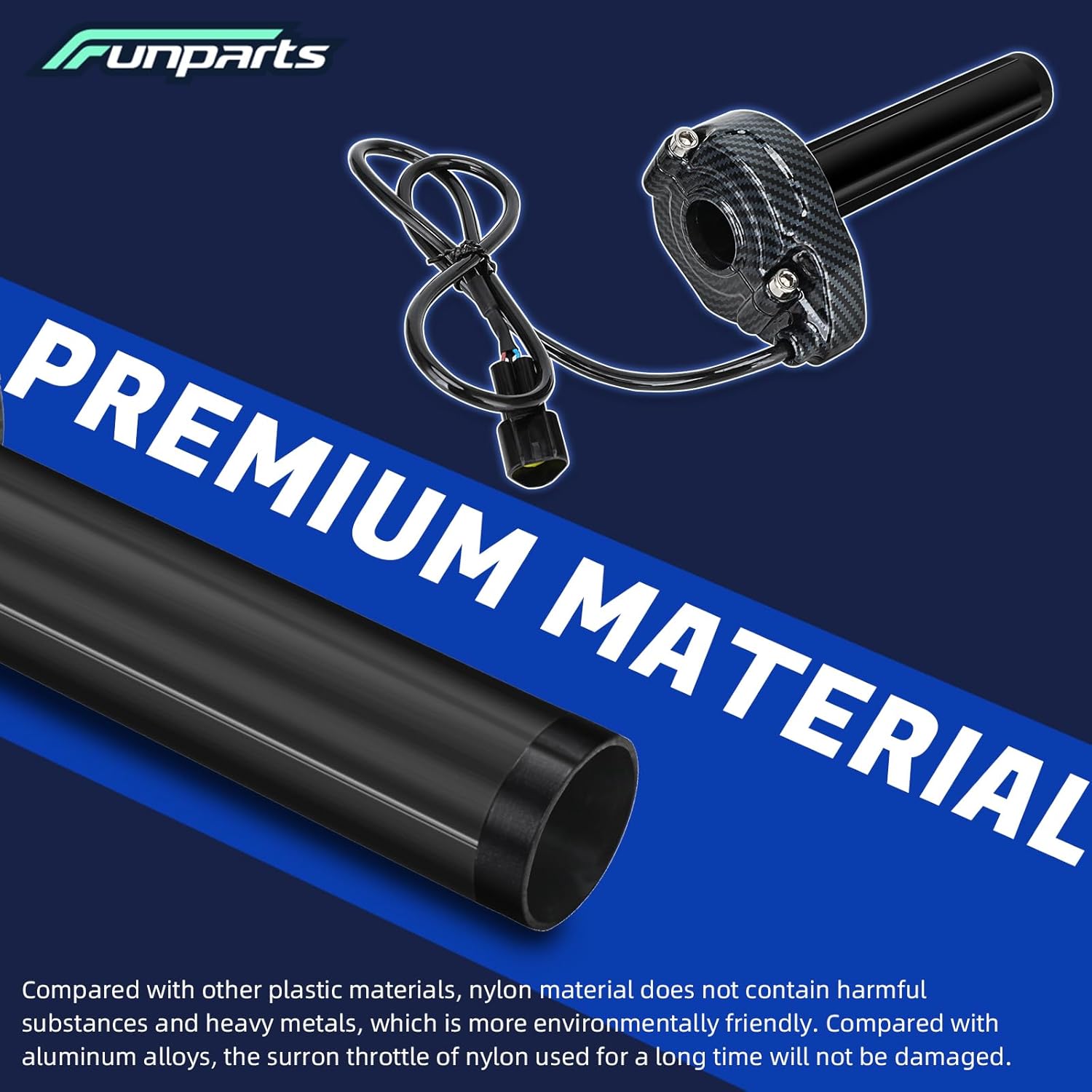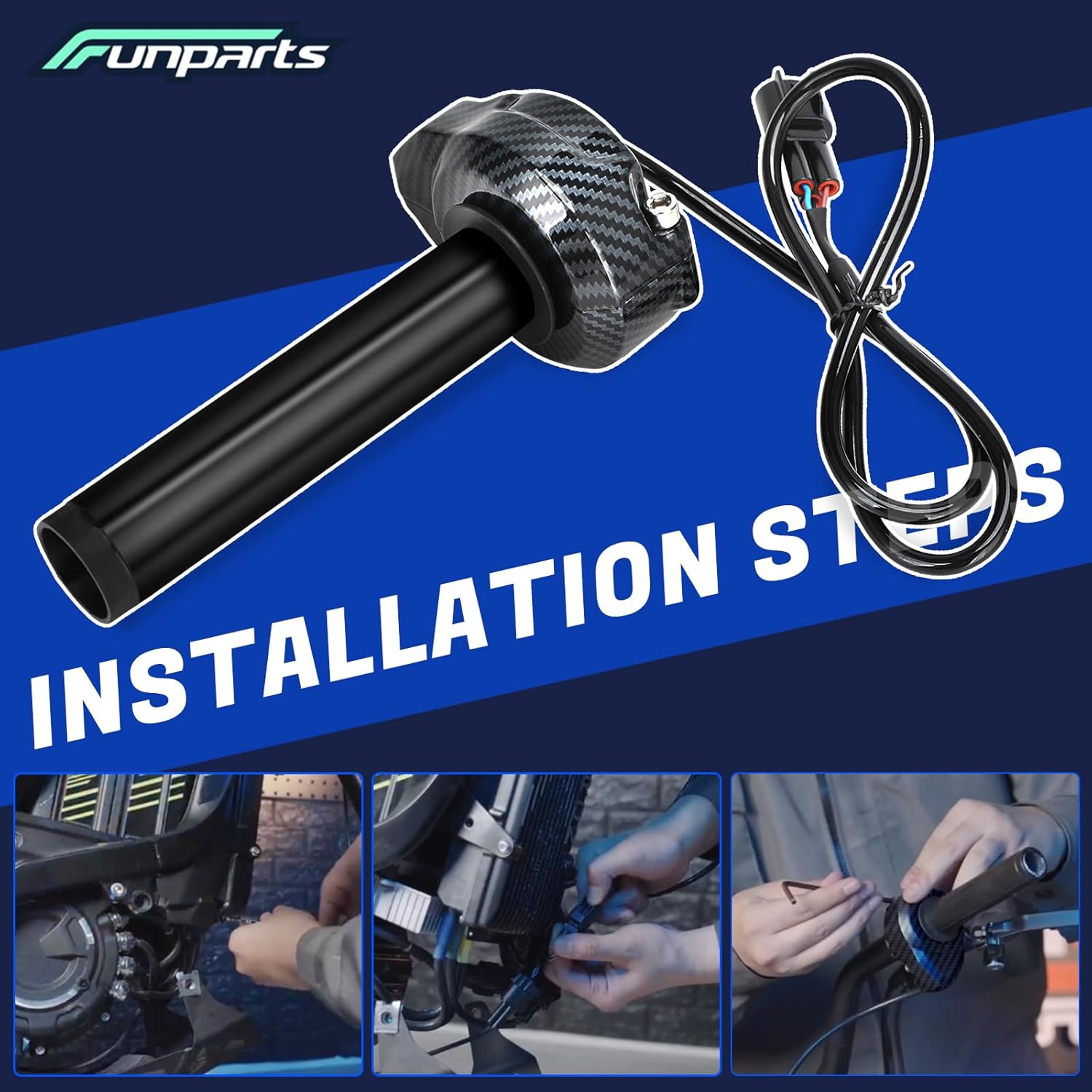 Black+Carbon Fiber color of the electirc throttle turn grip is quiet and deep, and it is an excellent accessory to dress up the bike, stable and durable, exquisite and fashionable. Durable, long life and good performance.