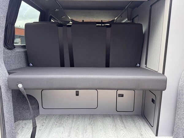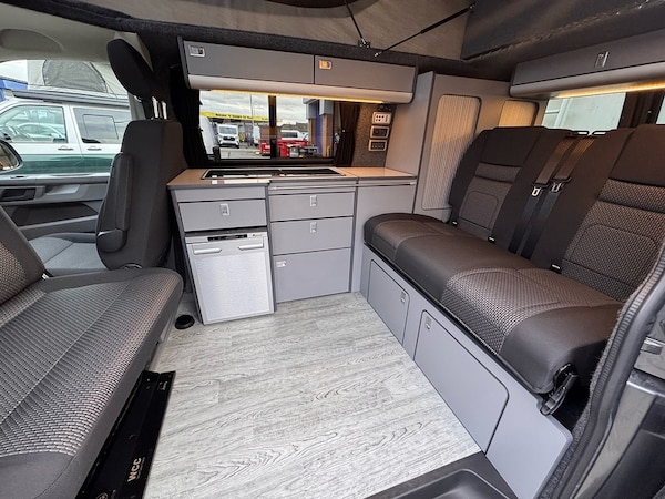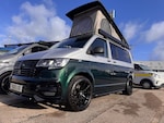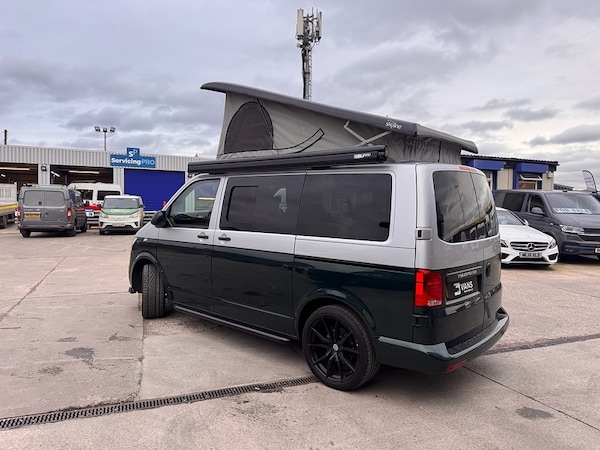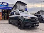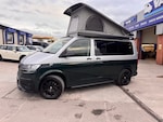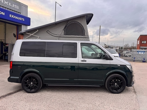 X5 CAMPERS IN BUILD!!!SILVER / EMERALD GREEN METALLIC 2 TONE CAMPER** DSG OIL SERVICE AND VW SERVICE COMPLETE - FULL HISTORY **Key Highlights:2 TONE FINISH - BRAND NEW CONVERSION - 5 YEAR ROOF WARRANTY - 1 YEAR MECHANICAL WARRANTY - 2 YEAR INTERNAL FURNITURE WARRANTY - EBERSPACHER DIESEL HEATER - - RIB BED (3 SEAT)- LEATHER THROUGHOUT - BODY KIT & ALLOYS - OPENING CANVAS POP TOP (SCENIC VIEW) - FIAMMA AWNING4 BERTH 2 TONE CAMPER CAMPER VAN IDEAL LUXURY CAMPER THAT CAN BE USED FOR ALL PURPOSES. STAYCATION & FAMILY CAR - Volkswagen Transporter T6.1 SWB - CALL US TODAY FOR A VIRTUAL/PHYSICAL APPOINTMENT OR PERSONAL VIDEO.Camper Spec - 4 Berth with Diesel Heater, SKYLINE Scenic Canvass Pop Up Roof With Roof Bed and Opening Scenic Canvas (Includes 5 Year Warranty), Fully Glazed Side Privacy Windows x2 Sliding, RIB BED, Double Swivel Bench Seat, Full Leather, Complete Carpet Lining and Insulation, Leisure Battery, 140amp Split B2B Charger Relay, Grey Wood Effect Flooring, 4 LED Spot Lights + 2 Strip Lights Above Kitchen Units, Power Management System, Full Motorhome Approved Hibitation & Gas Check, Including 240v Battery Charger, External Hook-Up, x2 240v Sockets, 12v Power Outlet, USB Ports, SMEV 9222S Twin Gas Burning Hobs Including Tap and Sink, Gas Locker, Removable Water Tank, 50 Litre Dometic Fridge, Crash Tested RIB BED.PCP & 10 YEAR HP FINANCE AVAILABLE - AS LOW AS 9.9% APR - SPEAK TO US FOR YOUR PERSONAL FINANCE QUOTATION.While every effort has been made to ensure the accuracy of this information, however errors may occur, please check with a Salesperson.. Composition Colour DAB Plus Radio System with 6.5in Touch-Screen, eCall Emergency System, Single 12V Outlets - Dashboard, Volkswagen App Connect, Cruise Control with Speed Limiter, Driver Alert System, Multi-Function Display Plus, 16in Steel Wheels - 20-Hole Style, Black Door Mirrors and Door Handles, Bumpers - Grey, Door Mirrors - Electrically Adjustable and Heated, Electric Windows - Front, Heat Insulating Glass in Cab, Radiator Grille with Double Chrome Trim Strip, Steel Spare Wheel with Original Equipment Tyre, Halogen Twin Headlights, Separate Daytime Running Lights, Allergen Filter, Armrest - Drivers, Dash Panel with Open Stowage Compartments - Drink Holders and Lockable Glovebox, Electronically Controlled Heating System, Folding Grab Handles on Roof Frame, Half-Height Side Trim Panels and Roof Trim Panels made of Hardboard, Height Adjustment for Driver Seat in - Manual, Illuminated Instruments - Dimmable, Interior Lighting with LED Technology in Load and Passenger Compartment, Leather-Wrapped Multi-Function Steering Wheel, LED Interior Lighting - 2 Reading Lights in the Roof Console, Load-lashing Rings - Six Folding, Manual Sliding Door Passenger Side, Rear Wing Doors Without Windows, Rubber Floor Covering in Cab, Seats - Dual Passenger in Cab, Sun Visor with Ticket Holder on Drivers Side and Airbag Label on Passengers Side, Tool Kit and Jack, Electromechanical Speed Sensitive Power Steering - Height and Longitudinally Adjustable Steering Column, ABS - Anti-Lock Braking System, ASR - Anti Slip Regulation, BAS - Brake Assist System, Crosswind Assist, Drivers and Front Passengers Airbags with Front Passenger Airbag Deactivation Switch, EDL - Electronic Differential Lock, Electronic Engine Immobiliser, ESP - Electronic Stability Programme, Forward Collision Warning - Front Assist with Autonomous Emergency Braking, Hill Start Assist, Remote Central Locking with 2 Remote Folding Keys, Single Tone Horn