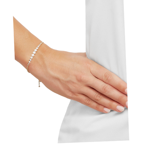 Distinctive Design: Showcases a bezel-set round cubic zirconia in the center, with smaller stones descending in size on both sides along a link chain.