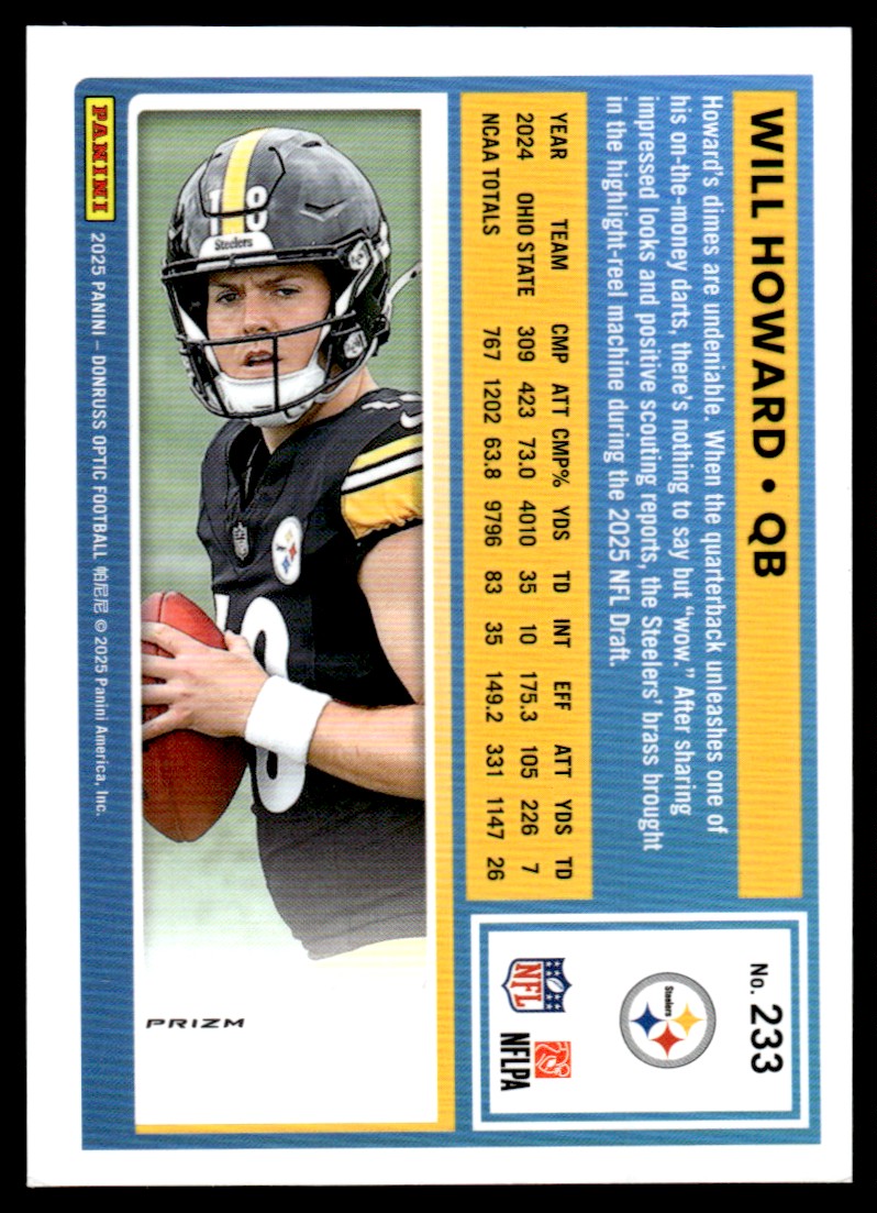 2025 Donruss Optic Green Hyper Will Howard Rookie Pittsburgh Steelers #233