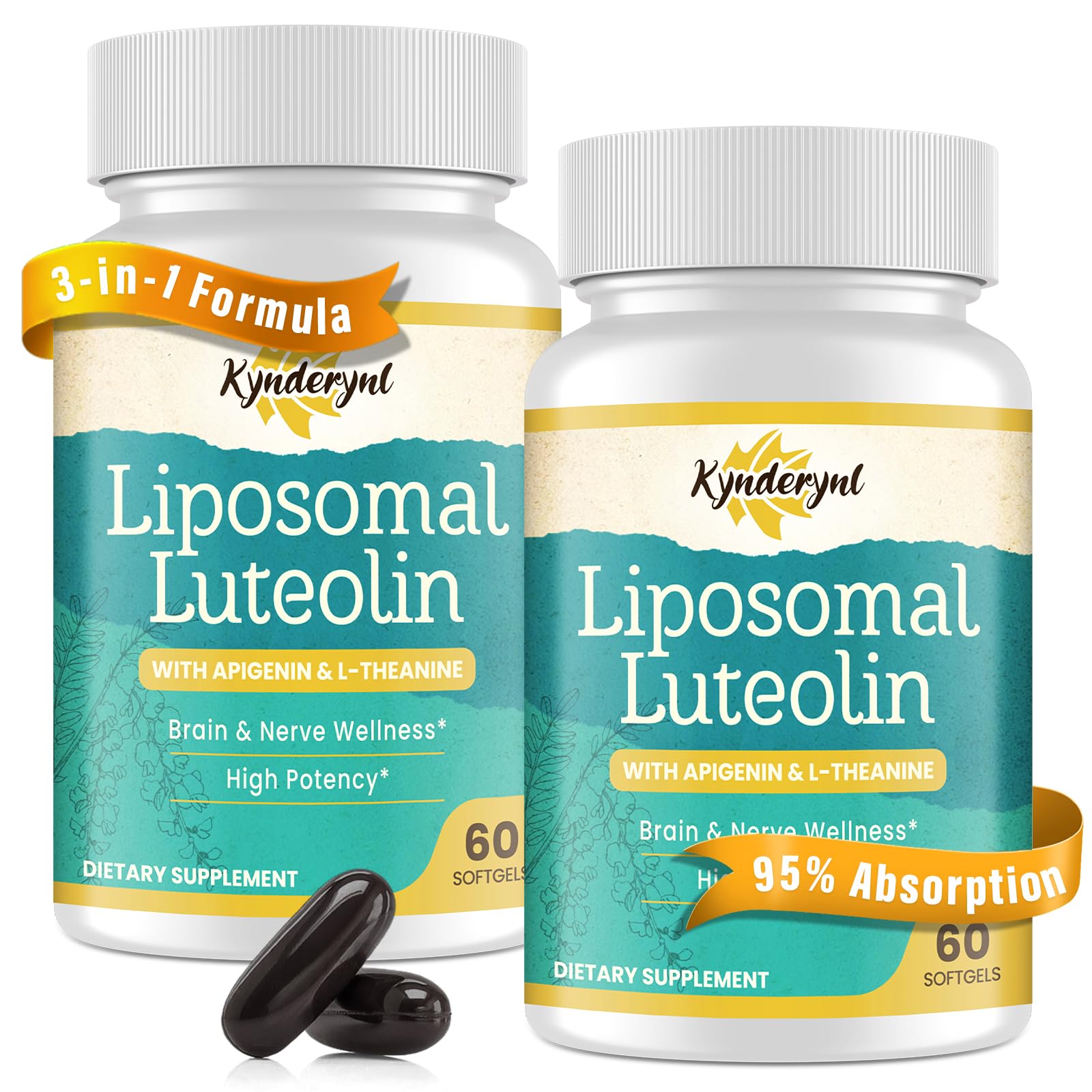 Kynderynl Liposomal Luteolin 200mg – Luteolin Supplement & Brain Supplement for Memory and Focus with Apigenin & L-Theanine – Non-GMO, Gluten-Free, 120 Softgels