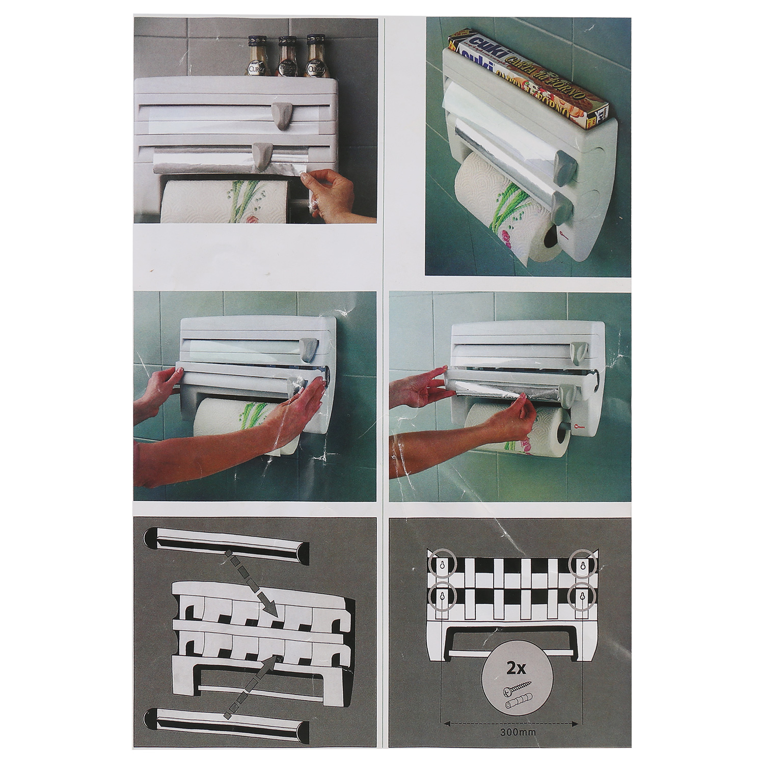 Our kitchen roll dispenser rack adopts upgraded ABS materials, , durable and safe. A space saver for regular paper roll (Its width within 11.02inches) and serves as a plastic wrap and foil dispenser with ergonomic sharp sliding cutter. The top part gives you an ideal spice rack. Our dispenser racks can up to 11lbs. Easy installation via our included screws and adhesive tapes. Wall-mount design enable you to stick it anywhere you want, from the kitchen counter-top to your toilet and bathroom storage, etc..