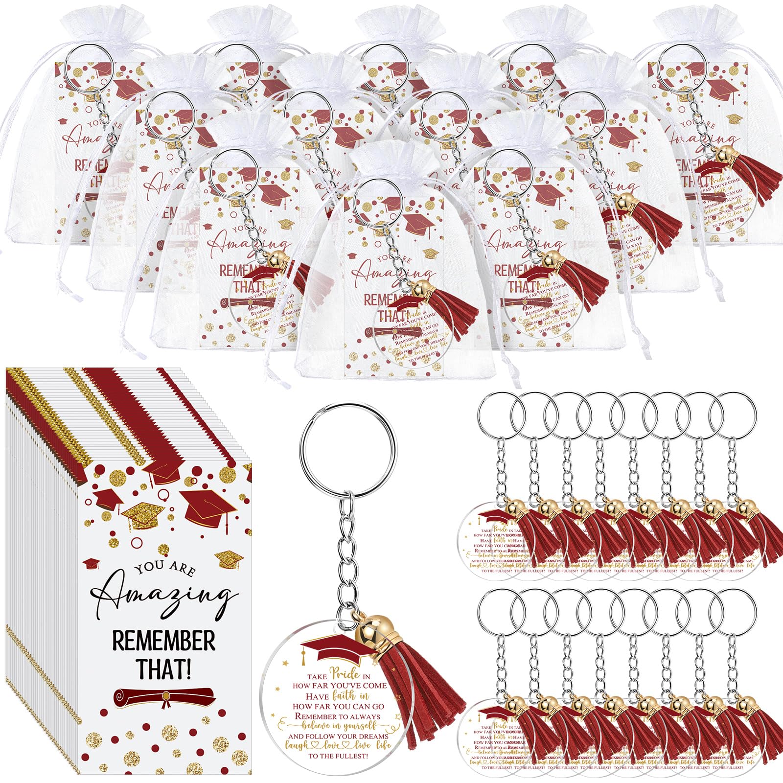 Features: Portable and lightweight: The 2024 graduation favors have proper size, will not take up too much space, you can put them into our bags, and you can carry them to other places easily, will bring you convenience in using. Wide range of usages: You can use these graduation cards on various occasions, such as graduation ceremony, graduation party and so on, they will add to the warm atmosphere and bring you good mood. Specifications: Main material: Inspirational gift keychains: acrylic and paper Graduation cards: 300 g coated paper Color: as shown in the picture Size of inspirational gift keychains: diameter is approx. 1.57 inches/ 4 cm Size of graduation cards: approx. 3.39 x 1.85 inches/ 8.6 x 4.7 cm Size of white organza gift bags: approx. 3.94 x 4.72 inches/ 10 x 12 cm Package includes: 100 x Graduation tassel inspirational gift keychains 100 x Graduation cards 100 x White organza gift bags Notes: Manual measurement, please allow slight errors on size. The color may exist slight difference due to different screen displays
