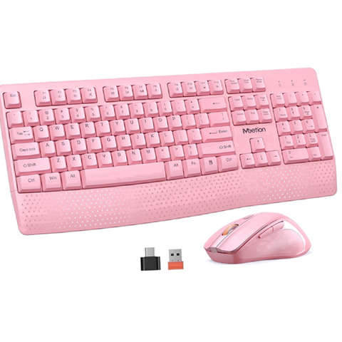 Upgrade your workspace with the Meetion Pink Wireless Keyboard and Mouse Combo today for stylish comfort and reliable performance.