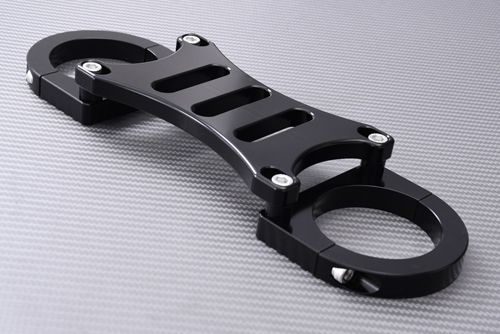 To address this issue, AVDB offers these fork braces for a wide range of motorcycles, from trail bikes to large American cruisers. Mainly machined from a solid block of aluminum, they are built to withstand bumps and road imperfections without flexing.