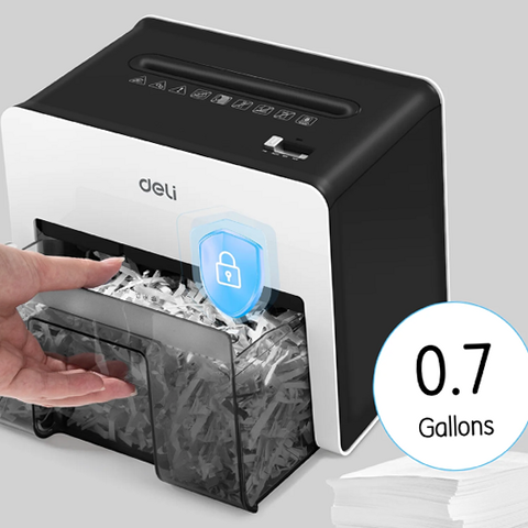 Specifications: 110V power supply, 4.9ft/min shredding speed, 0.7-gallon wastebasket, and weighs 6.26lbs.