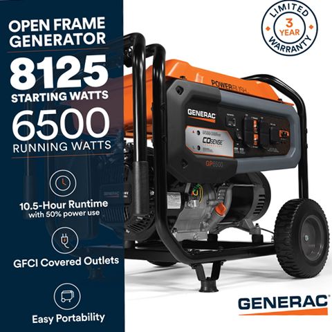 Equip your home or job site with the reliable Generac GP6500 portable generator today for powerful backup energy you can trust.