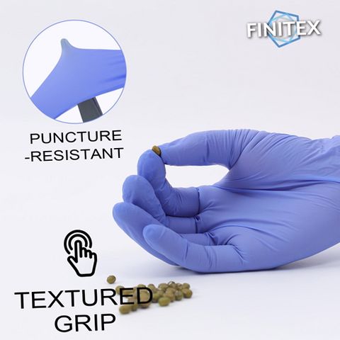 FINITEX Medical Exam Gloves are crafted from 100% nitrile material, delivering superior strength and flexibility for demanding tasks. These disposable gloves are latex-free and powder-free, reducing the risk of allergic reactions and skin irritation. With a thickness of 3.2 mil, they provide excellent resistance against punctures, tears, and chemicals, ensuring reliable hand protection. The XL size offers a comfortable fit with high elongation for adaptability to different hand shapes. Textured fingertips enhance grip and precision, making these gloves suitable for medical examinations, food handling, cleaning, automotive work, salon services, and more. Their elastic design allows for easy donning and doffing while maintaining tactile sensitivity. The vibrant purple-blue color helps distinguish these gloves in busy environments. Ideal for professionals seeking dependable disposable gloves that combine safety, comfort, and versatility across multiple applications.