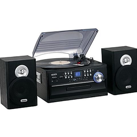 Dust off your records, compact discs, and cassette tapes and start listening to all your favorite music on the JENSEN JTA-475B 3-Speed belt driven stereo turntable. This unit comes with a CD Player, cassette deck, AM/FM radio, and plays records at 33/45/78 RPM. You also have the option of listening to your iPod, MP3 or other digital audio players through the convenient auxiliary input jack connection. Listen through the speakers or your own stereo headphones (not included). Added features like programmable memory, bass boost, and a remote control make this music system hard to pass up. Listen to all your music your way with this great sounding and versatile JTA-475B stereo music system.