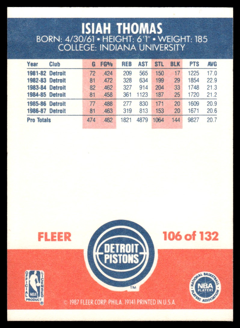 1987-88 Fleer Isiah Thomas Detroit Pistons #106