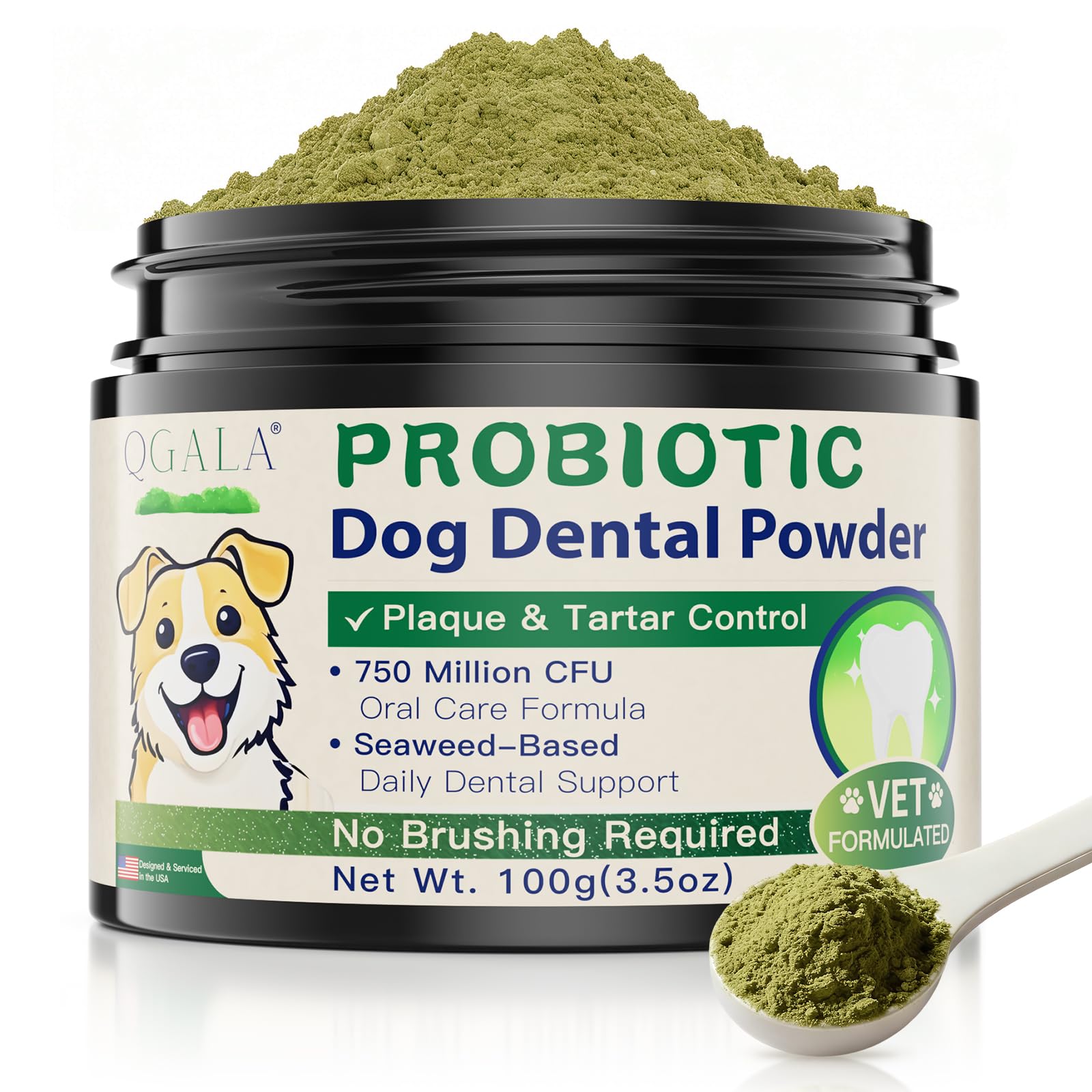 Qgala Dog Dental Powder, Advanced Teeth Cleaning Powder to Reduce Plaque & Tartar, Breath Freshener with 750,000,000 CFU Probiotics & Natural Herbs, Dental Care for Dogs, 3.5 Oz