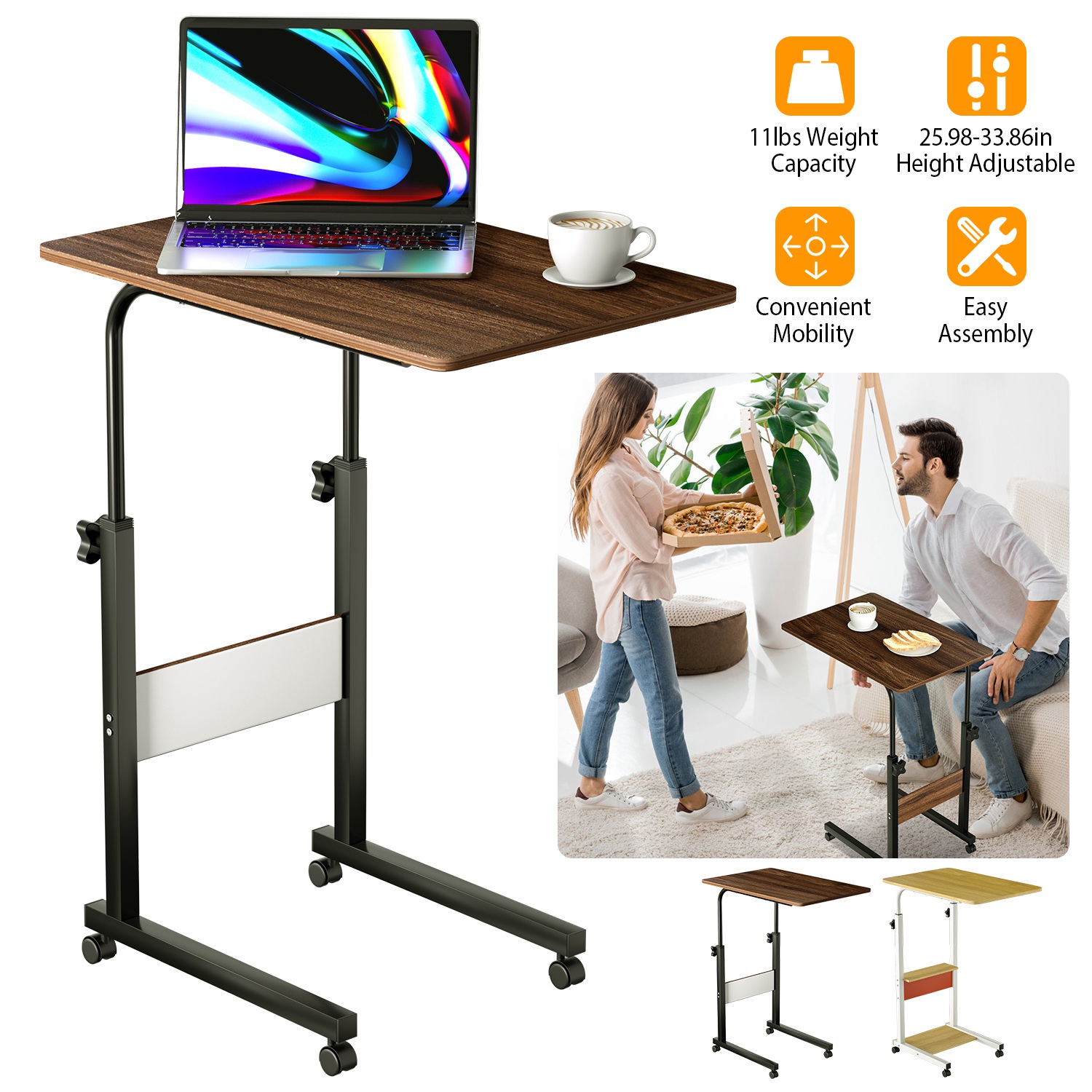 Multifunctional End Table:This side table can be placed in the living room,bedroom,by the sofa/bed/couch to provide convenient space for placing laptop,books,magazines,coffee,fruits,a meal or other items.