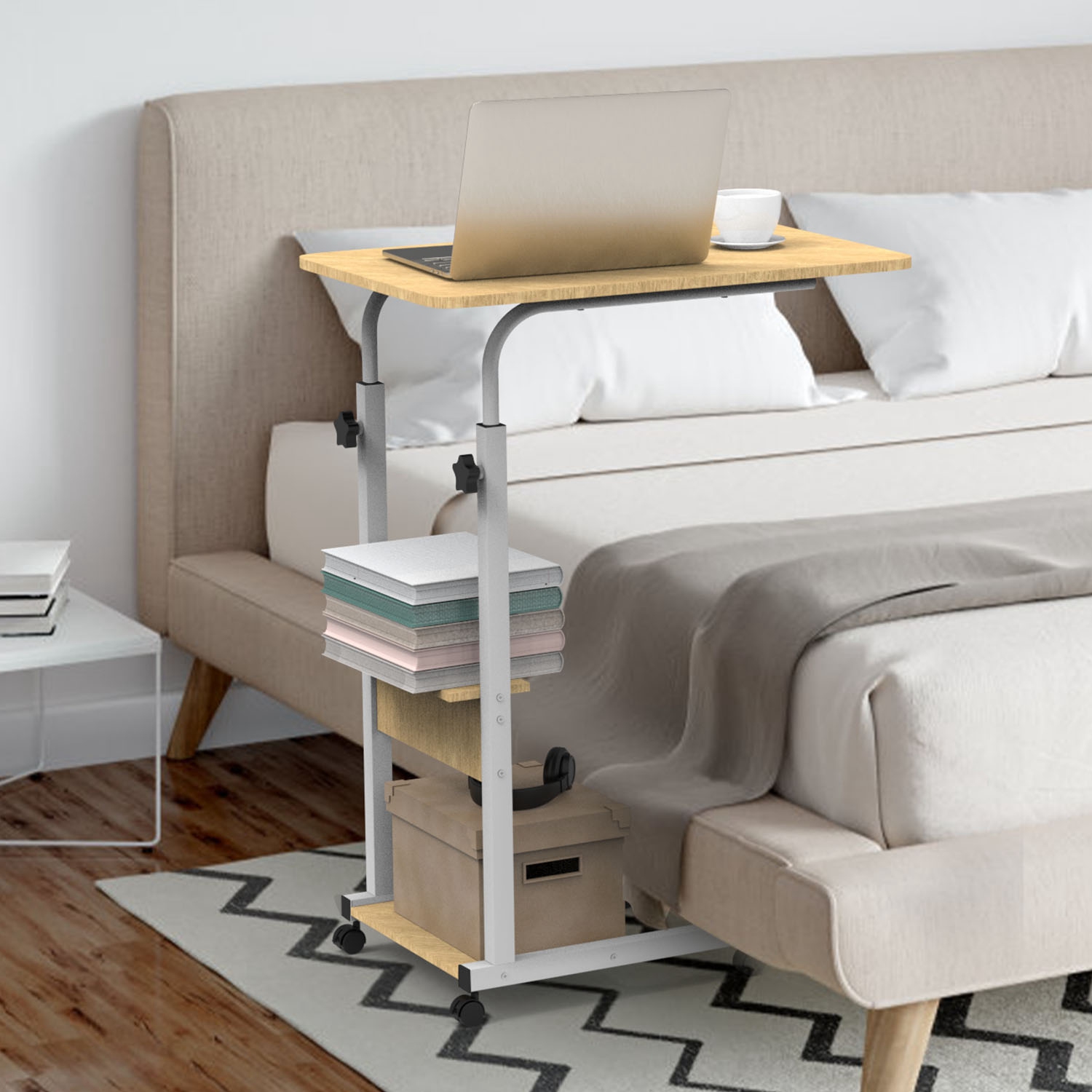 Adjustable Height:Simply rotating the big knobs on the poles,you can adjust the height of the side table from 30.31in to 39.37in easily according to your need.