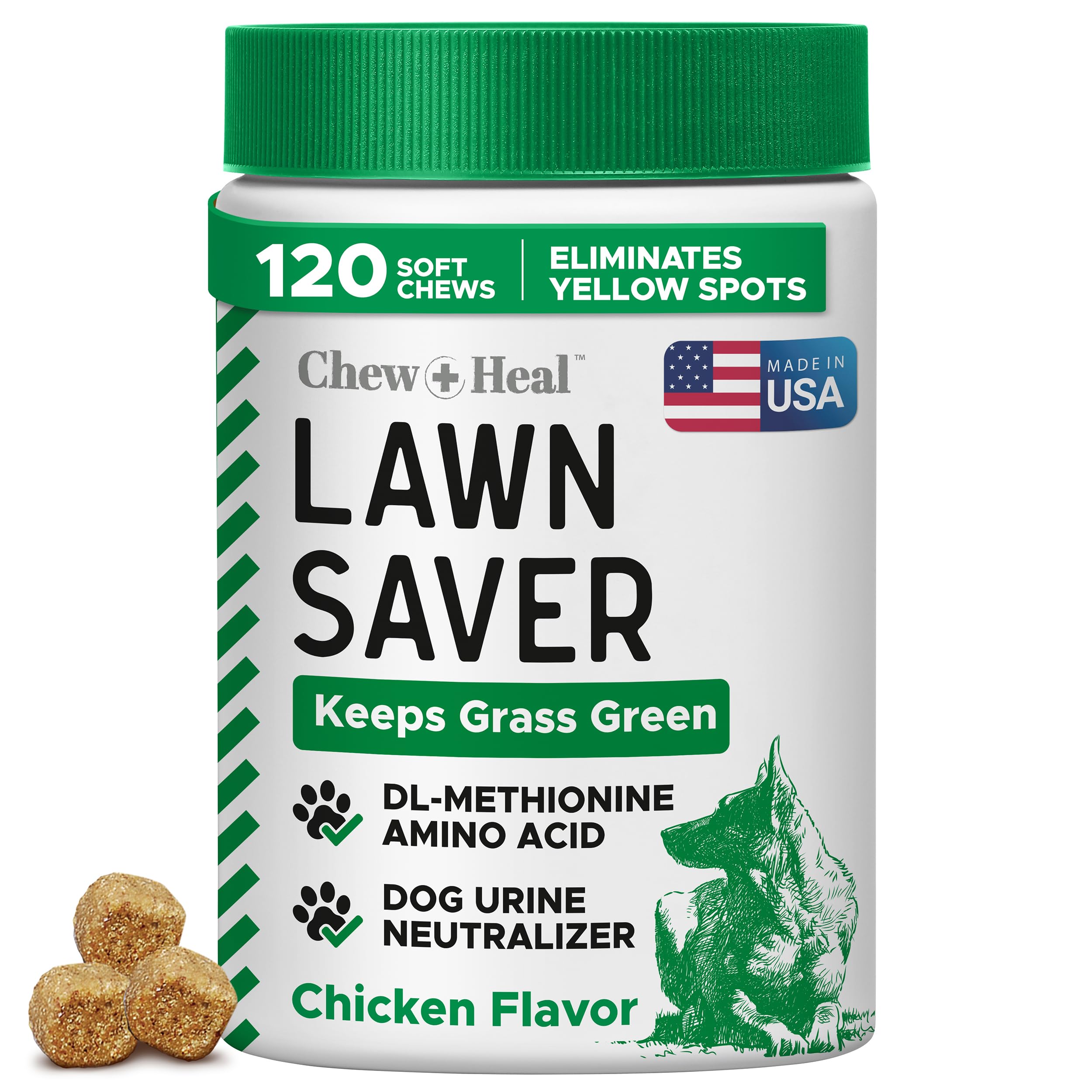 Dog Urine Neutralizer for Lawn, 120 Soft Chews - Green Grass Saver - Eliminates Burns and Yellow Spots - Female and Male Dog Pee Grass Repair with Natural Ingredients