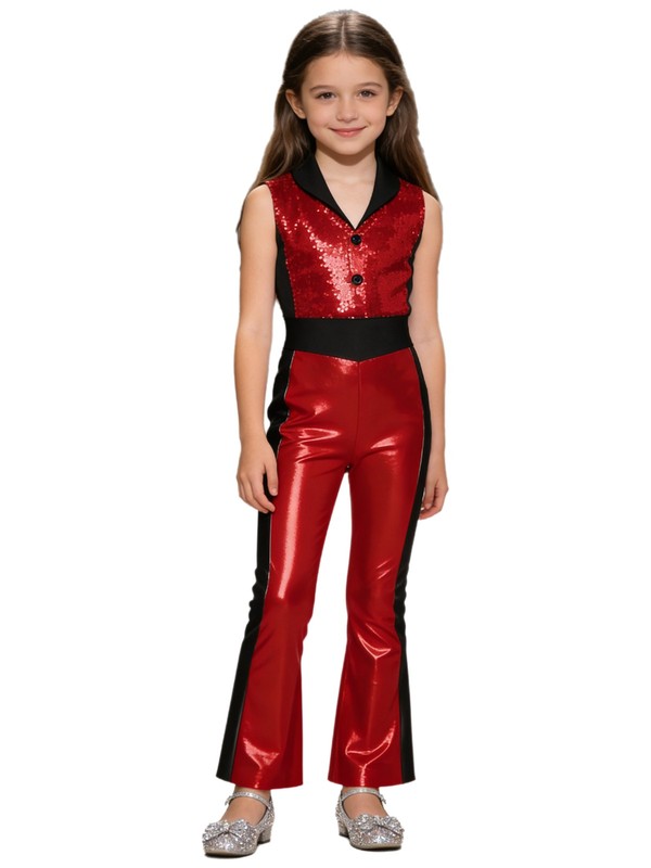 Kids Girls Rompers Jazz Jumpsuit Streetwear Bodysuit Sequined Shiny Bodice