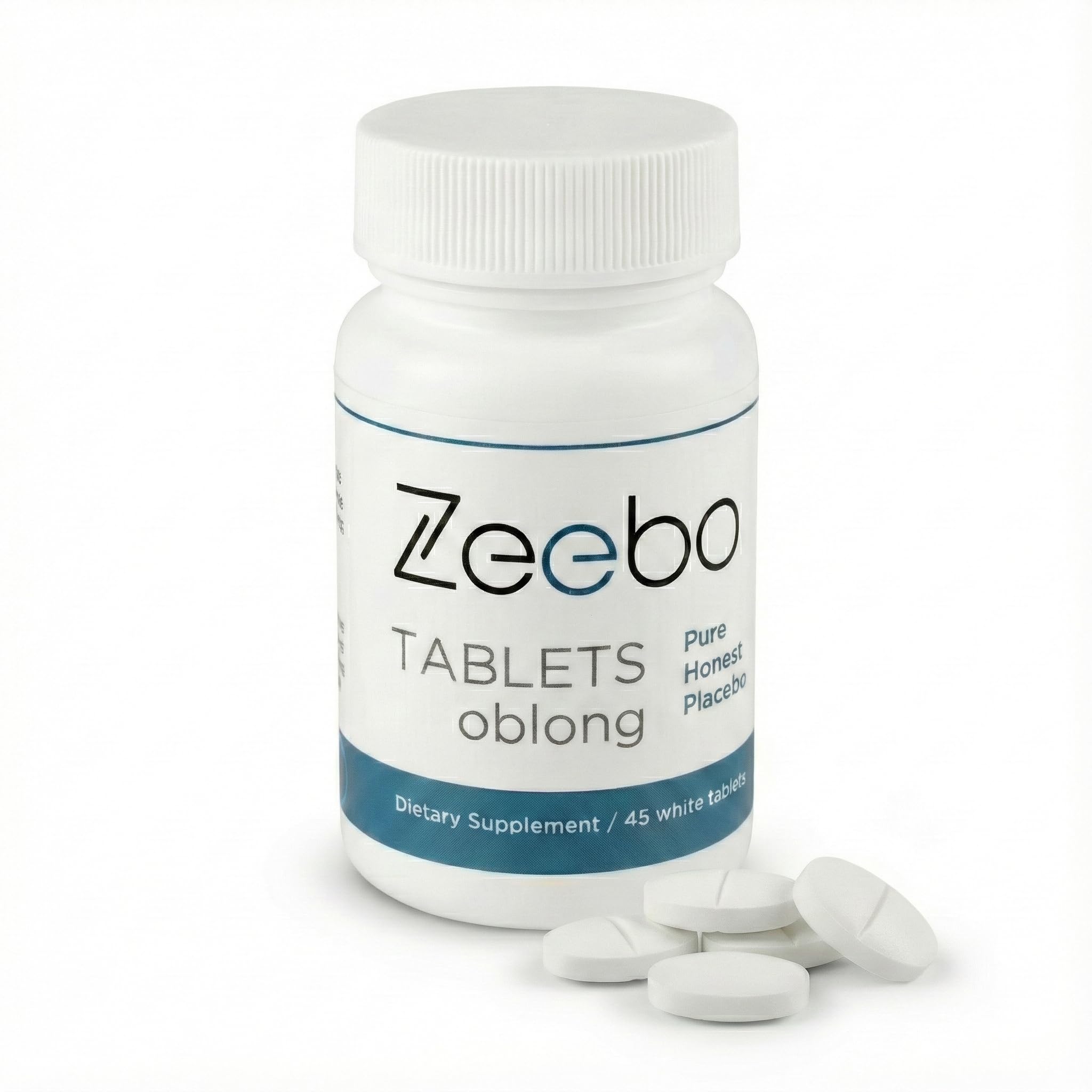 Zeebo Placebo Pills - White Tablets contain 500mg Microcrystalline Cellulose, an inert fiber. They are designed to help you create a safe placebo experience. Choose the fomat that works best for you: a white tablets (round or oblong), a white capsule, or a blue-white capsule. When it comes to Zeebo, You are the active ingredient. Users of Zeebo honest placebo pills know they are taking a placebo containing only inert ingredients. Zeebo is pure placebo, non-drowsy, non-homeopathic. Do not use Zeebo to delay or replace medical treatment.