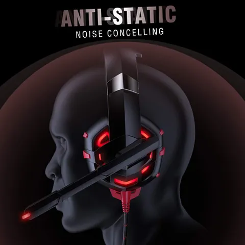 RUNMUS K2 RED Gaming Headset with Noise Canceling Mic for PS4 Xbox One PC Mobile 7.1 Surround Sound Headphone with LED Light for Kids Adults Black
