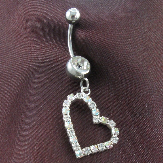 Title: Valentine's Day Clear Love Heart Dangle Belly Button Naval Ring Body Jewelry 14G