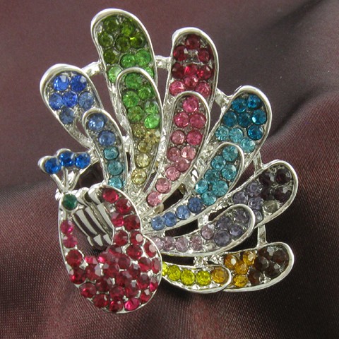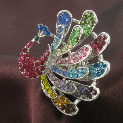 Title: Peacock Bird Animal Ring Multicolor Yellow Pink Blue Green Stone Crystal Stretch