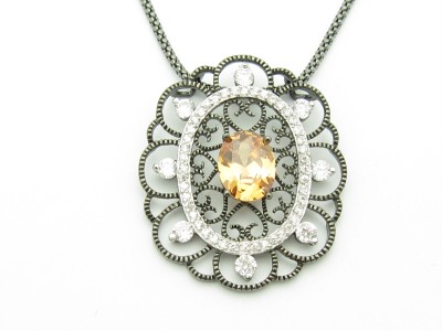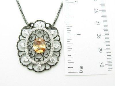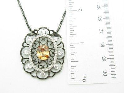 DescriptionTHIS IS TRULY A MUST HAVE DESIGNER INSPIRED 18KT GOLD STERLING SILVER DIAMOND SET WHITE SAPPHIRE & CITRINE VINTAGE DESIGN NECKLACE FOR ALL OCCASIONS. MADE WITH 18KT BLACK GOLD OVER STERLING SILVER .925. GET THE DESIGNER LOOK WITHOUT THE EXPENSIVE PRICE TAG! THIS UNIQUE HAND MADE VINTAGE DESIGN OVAL NECKLACE WILL NEVER TARNISH. WEAR IT WITH CONFIDENCE! THIS NECKLACE WOULD BE A COMPLIMENT FOR ANYONES JEWELRY COLLECTION. ALL STONES ARE HAND SET CREATED WHITE SAPPHIRES & GOLDEN CITRINE FOR THE REAL DIAMOND LOOK & SPARKLE! PLEASE VIEW OUR LISTINGS FOR SOME OTHER UNIQUE ITEMS. COMES WITH A BEAUTIFUL JEWELRY BOX FREE!! THIS NECKLACE IS BRAND NEW ALL HAND MADE! METAL: 18KT BLACK GOLD OVER STERLING SILVER .925 COLOR: BLACK TONE STONES: CREATED WHITE SAPPHIRES / GOLDEN CITRINE SIZE: 1.50" LENGTH *IF YOU HAVE ANY SPECIAL REQUEST PLEASE FEEL FREE TO CONTACT US VIA E-MAIL* THANKS FOR LOOKING!! PAYMENT WE ACCEPT: . Pay Pal Only! We ask that you pay within 3 days of the auction ending. Once the item has been paid in full, the item will ship within 1 business day. SHIPPING | Shipping and Handling | To | Service | Insurance |