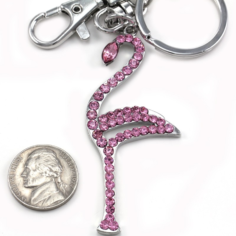 Title: Cute Pink Flamingo Bird Animal Keychain Key Ring Charm Car Accessory Silver Tone