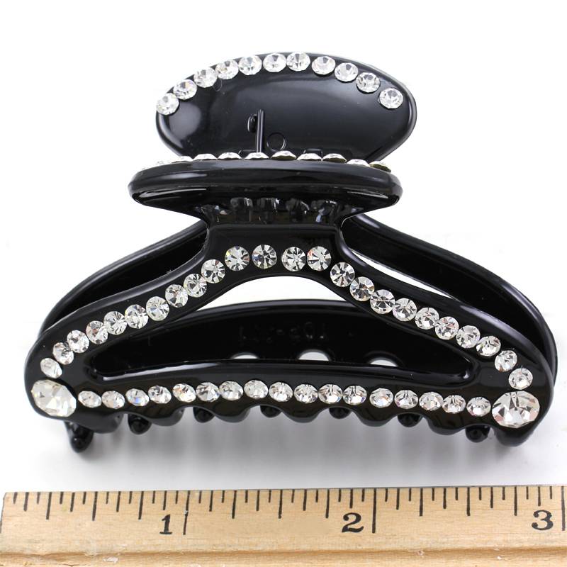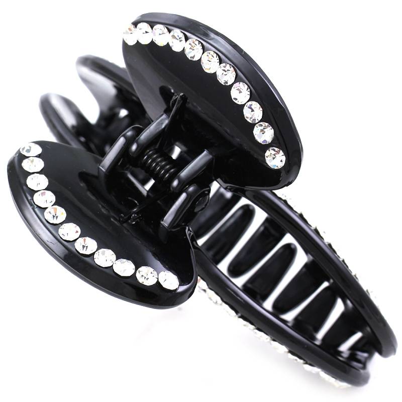 Title: Black Hair Claw Jaw Pin Butterfly Clip Clamp Clear Pave Rhinestones Styling h17