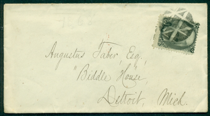 US 1860’s, Mich geometric fancy cancel ties 2¢ Jackson grill (#87) to cover, addressed to “Biddle House” in Detroit, Scott $300.00