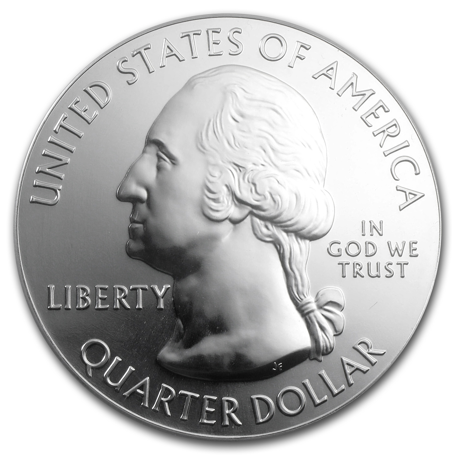 - Obverse: Portrait of George Washington originally designed by John Flanagan, with the inscriptions of United States of America, Liberty, In God We Trust and Quarter Dollar.