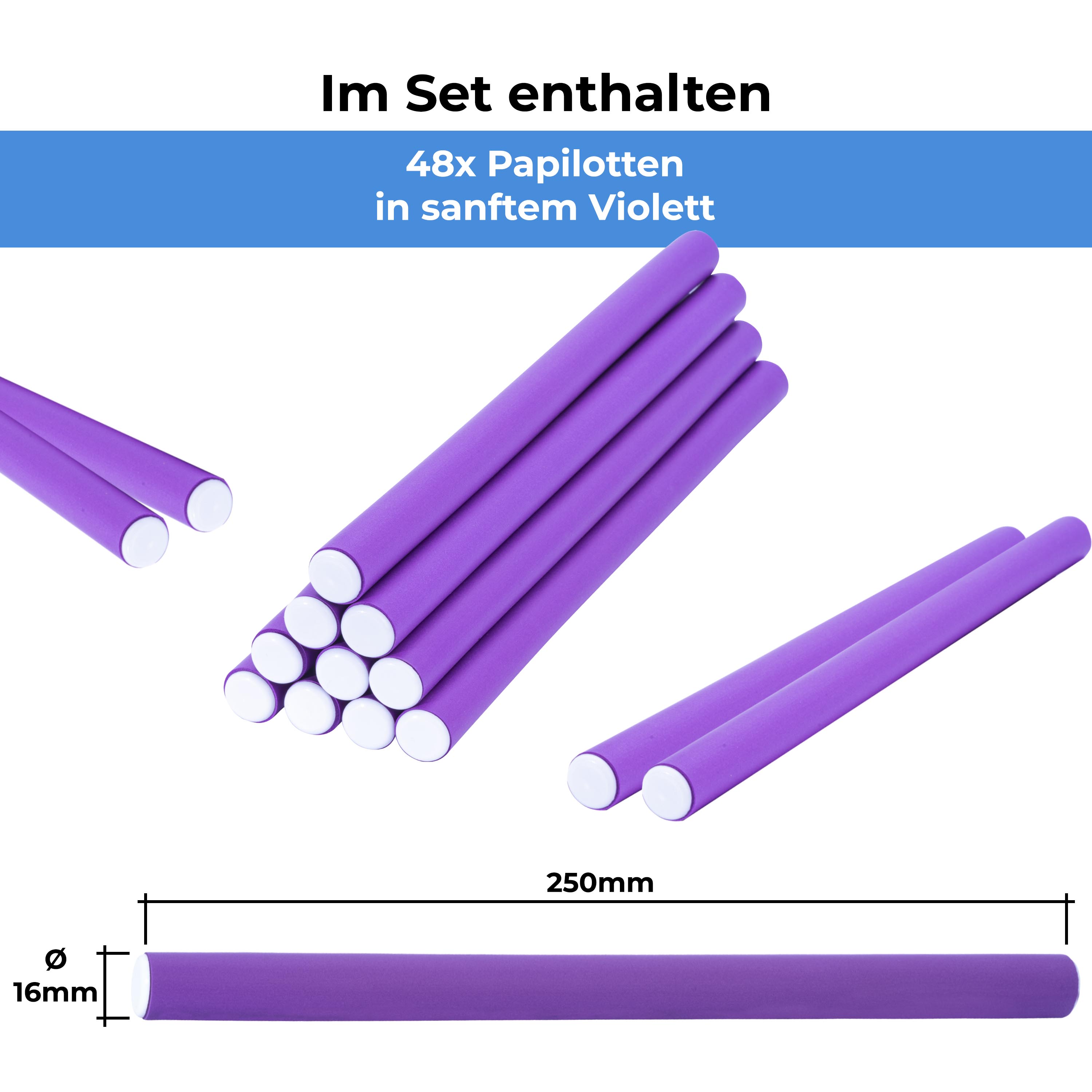 Lieferumfang: 48 Stück lila Papilotten / Packung, Ø16mm x 250mm