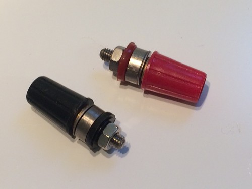 Supplied as a pair of 1 red and 1 black, these are new old stock from the 1960's, insulated screw down type wire binding / terminal posts.