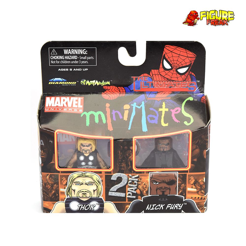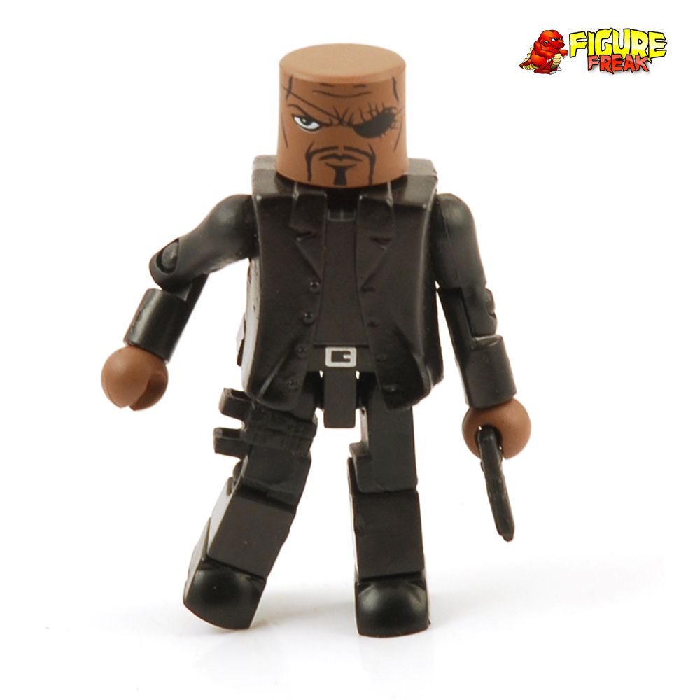 From the Marvel Minimates Series 27 Ultimates wave... loose and complete Nick Fury figure. A Diamond Select Release! Art Asylum Designs & Sculpts! The bestselling Marvel Minimates line continues with this themed assortment featuring the stars of Marvel's award-winning Ultimates series! Each case includes Ultimate Thor & Ultimate Iron Man, Ultimate Hulk & Ultimate Nick Fury, Ultimate Captain America & Ultimate SHIELD Agent plus the variant Ultimate World War II Captain America! Each Minimate stands two inches tall with 14 points of articulation and a variety of removable and interchangeable parts and accessories.