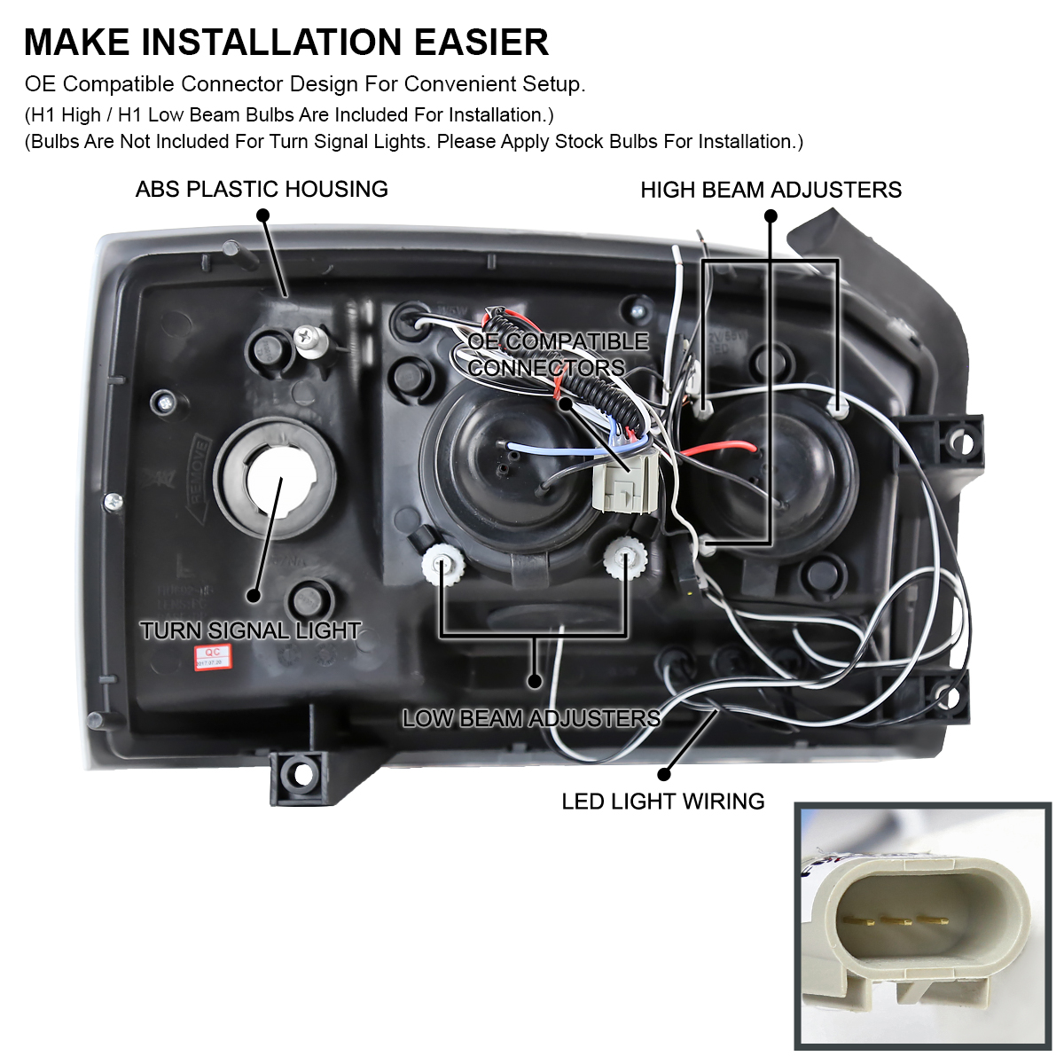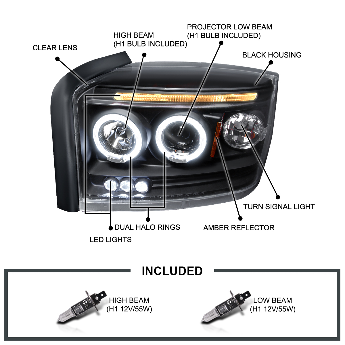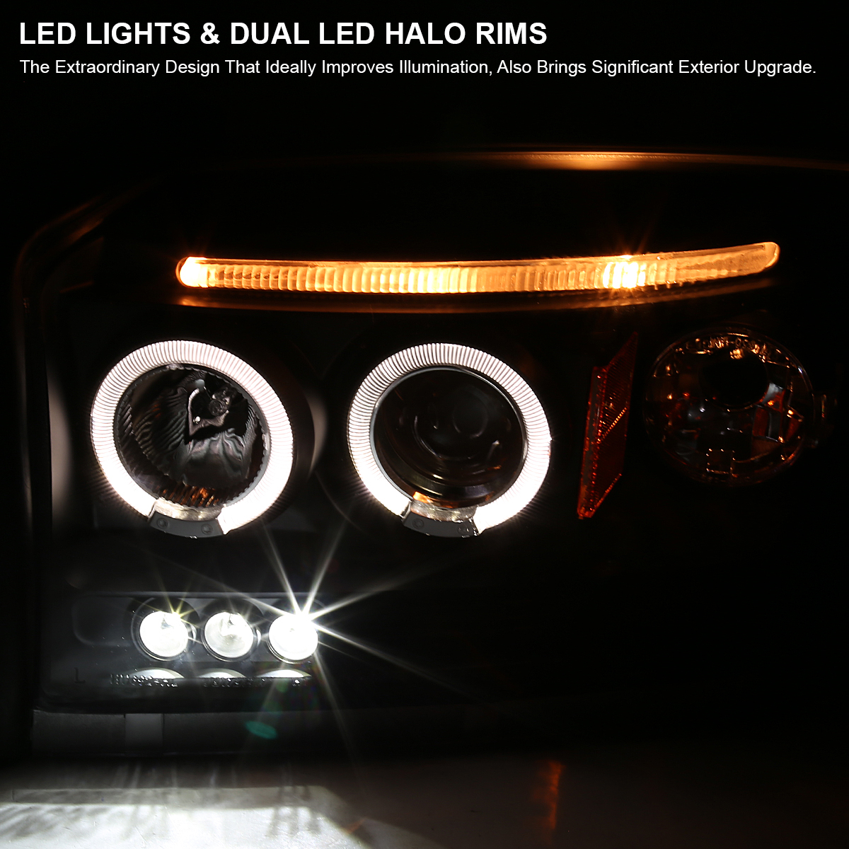 | Features | Projector Style Headlights Dual LED Halo Rings LED Lights & LED Strip |