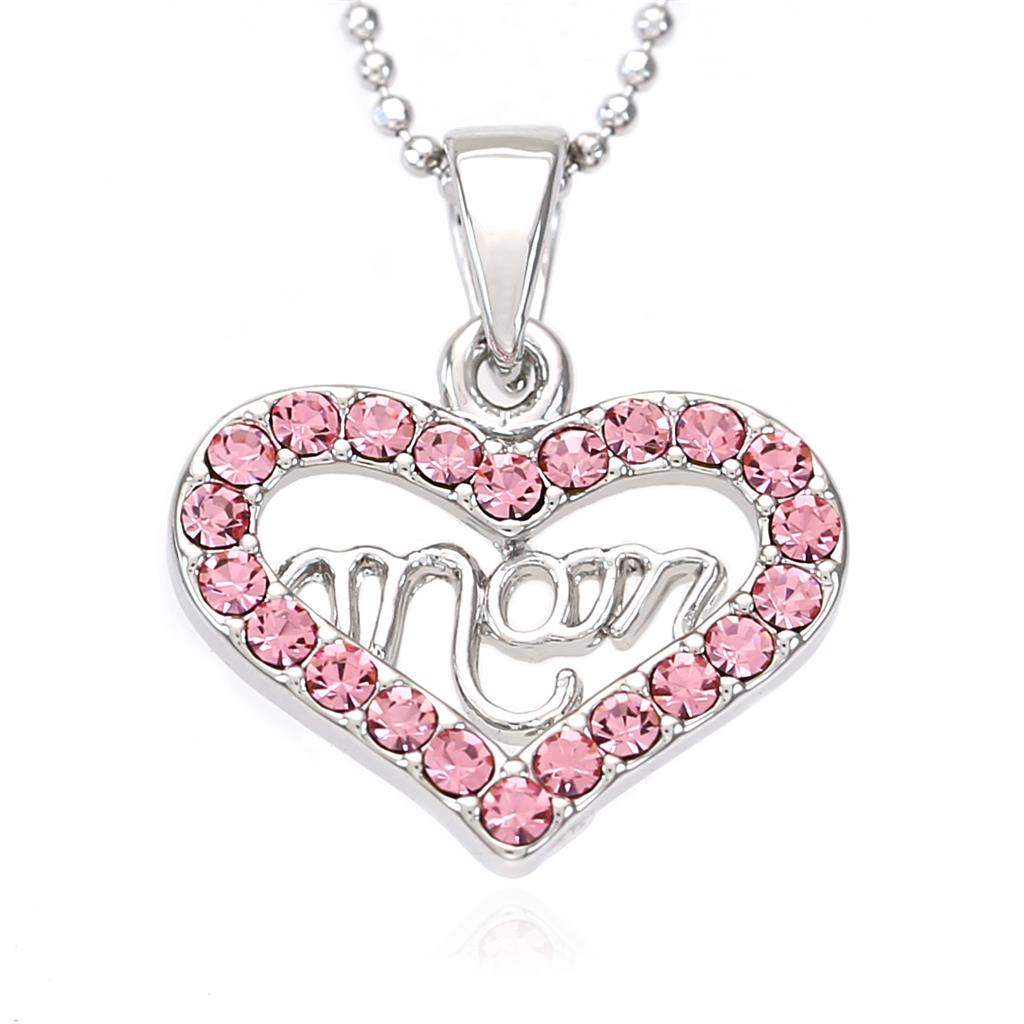 Pendant Size: Approx. 0.75 Inch Width x Approx. 0.5 Inch Length Chain Length: Approx. 17.5 Inches Stone: Pink (Colors May Vary Due To Different Display Settings) Material: Rhodium Plated Condition: Brand New Lead Compliant