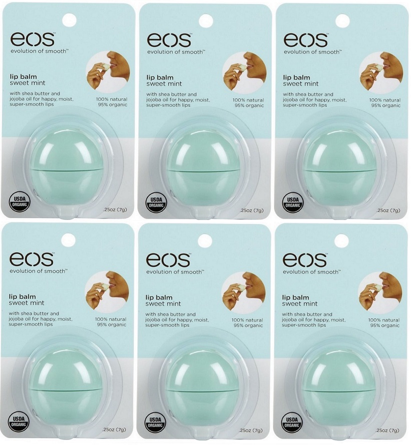 Can a lip balm make you smile? eos thinks so. That's why eos invented this one. eos lip balm is 95% organic, 100% natural, and paraben and petrolatum free. Packed with antioxidant-rich vitamin E, soothing shea butter and jojoba oil, eos keeps your lips moist, soft and sensationally smooth.