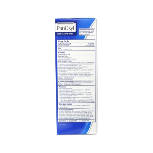 Stiefel PanOxyl Acne Foaming Wash Now you can hit the beach or show off that strapless gown with the help of Maximum Strength PanOxyl Acne Foaming Wash for your face, chest, and back. Made with the highest strength of Benzoyl Peroxide available without a prescription, the rich, elegant lather of PanOxyl Acne Foaming Wash gently removes dirt and excess oil to cleanse and unclog pores. Benefits: Uses a 10% Benzoyl Peroxide. Treats and prevents acne blemishes.