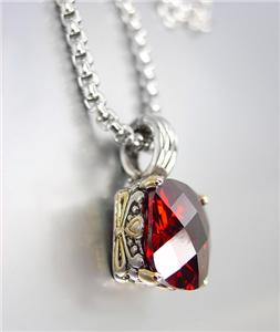 Designer Style Silver Gold BALINESE Filigree Red Garnet CZ Crystal Pendant on Chain Necklace