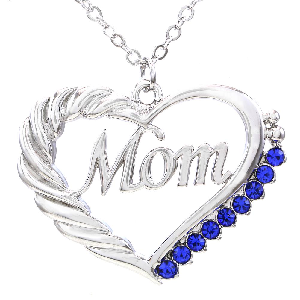 Title: Royal Blue Heart MOM Necklace Love Pendant Women Mothers Day Jewelry Gift Charm
